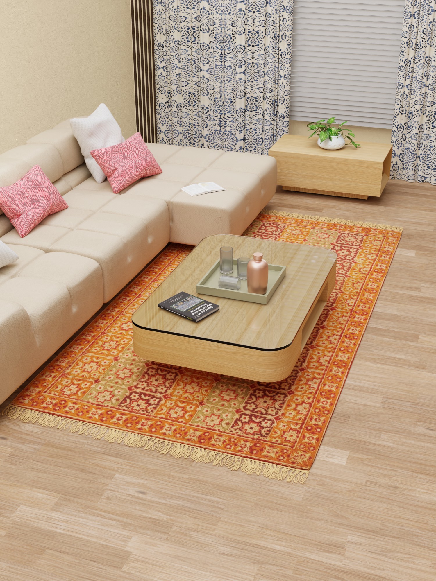 Now any protruding knots and extra threads are cut off using scissors and clippers. Now the craftsmen ensure that all four sides of the carpet and weaves are locked by stitches so that the carpet remains intact and strong.