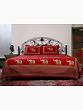 The True-Red hue is both bold and inviting, instantly adding a touch of vibrancy to your bedroom. The all-over elephant-floral motif is a captivating blend of traditional Indian design and modern aesthetic. The elephants, rendered in subtle off-white and beige tones, stand out beautifully against the rich red background. The intricately detailed floral elements are elegantly interwoven with the elephants, creating a harmonious and captivating visual narrative. The inclusion of subtle gold accents adds a touch of regal luxury to the design, completing this beautiful ensemble. Notice the attention to detail in the border design, which seamlessly complements the central motif, showcasing the skilled artistry involved in the creation. This bedsheet will add a touch of opulence and elegance to your sleeping space, transforming it into a calming retreat.