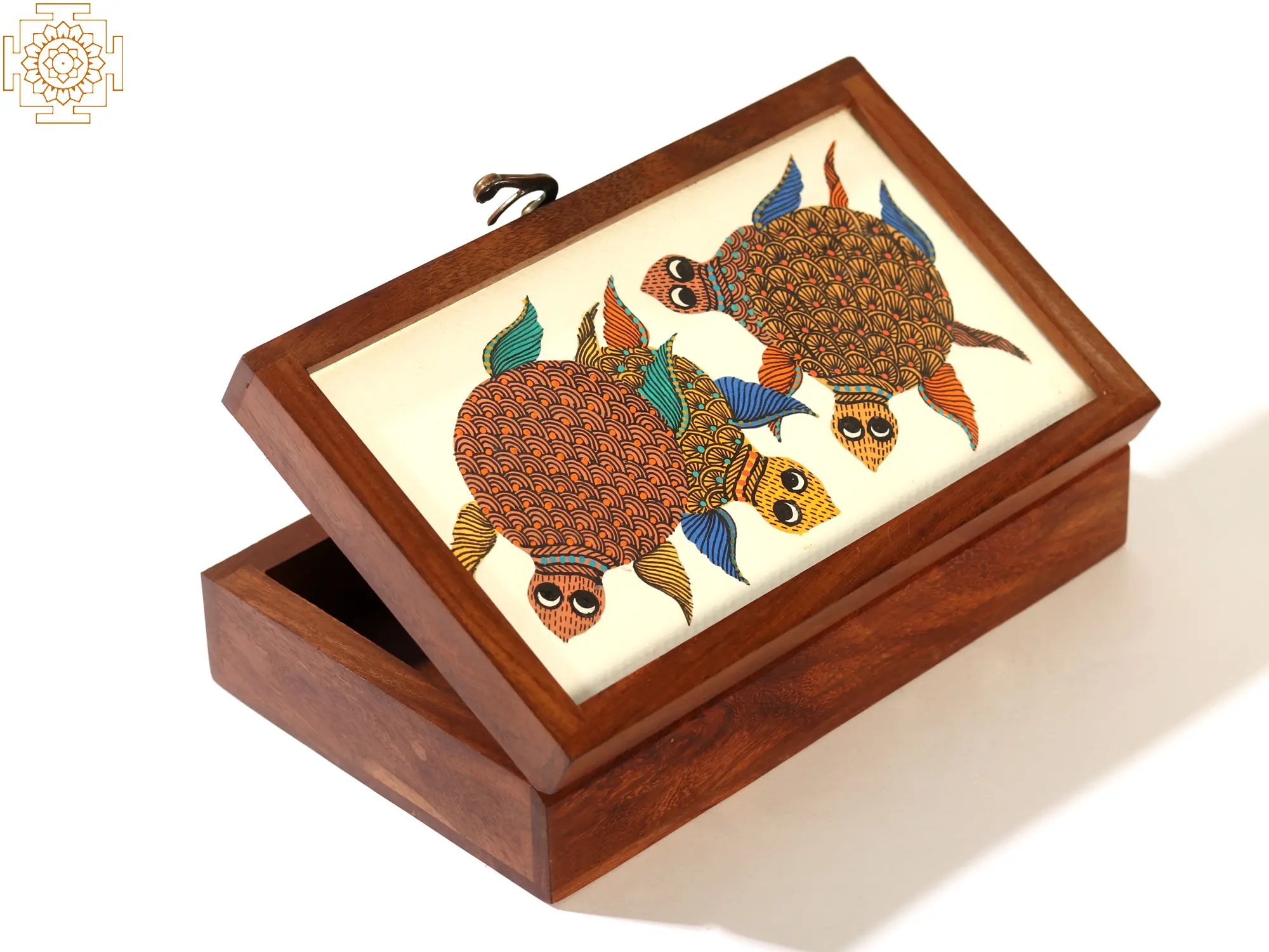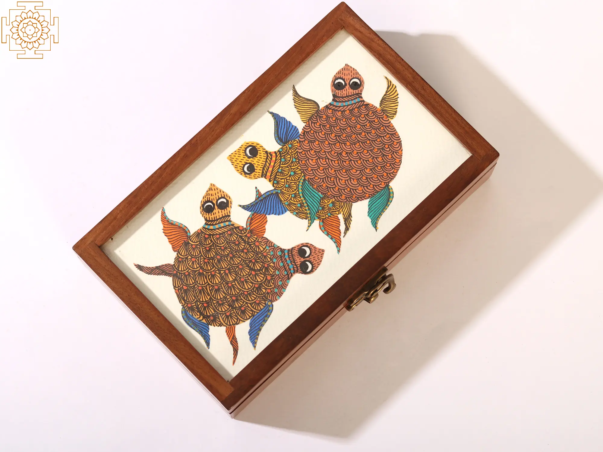This Turtle Tile Wood Box is not just beautiful; it’s also built to last. The sturdy wooden construction ensures durability and longevity, while the secure clasp keeps your treasures safe and sound. The smooth finish of the wood is pleasant to the touch, enhancing the overall tactile experience. The attention to detail in both the woodwork and the Gond painting demonstrates a commitment to quality that’s evident in every aspect of this piece. It's a testament to the skill and dedication of the artisans who created it, making it a truly special item.