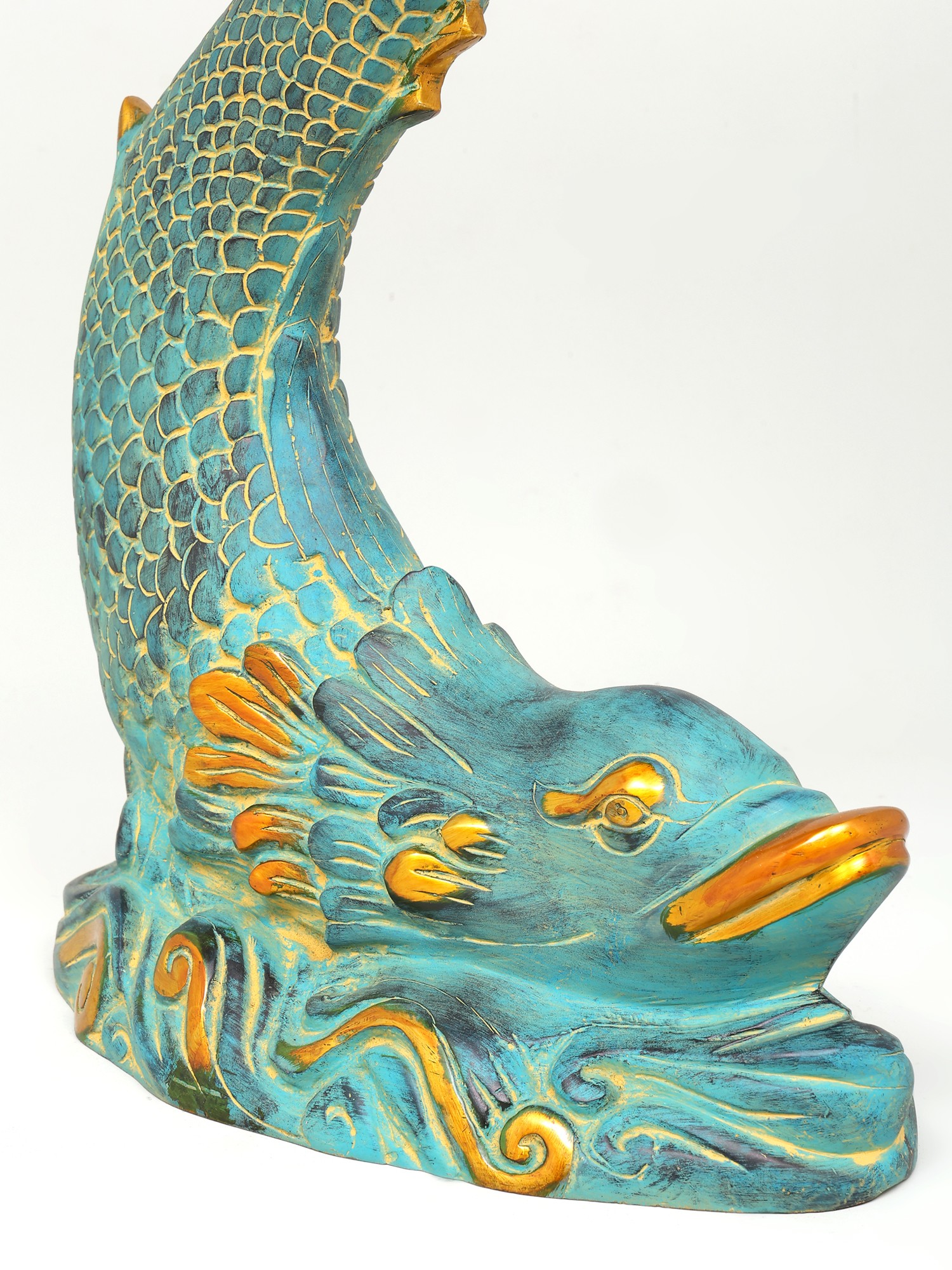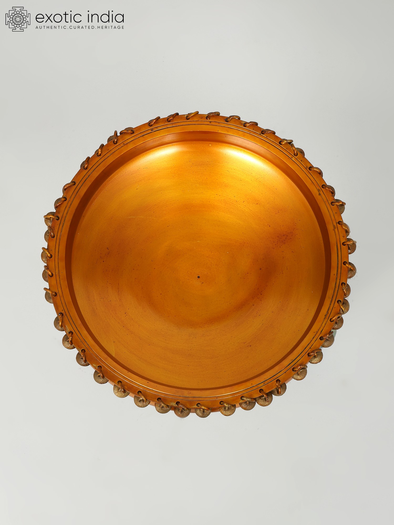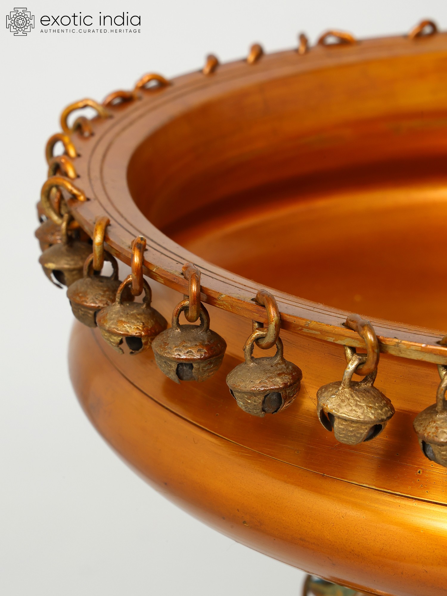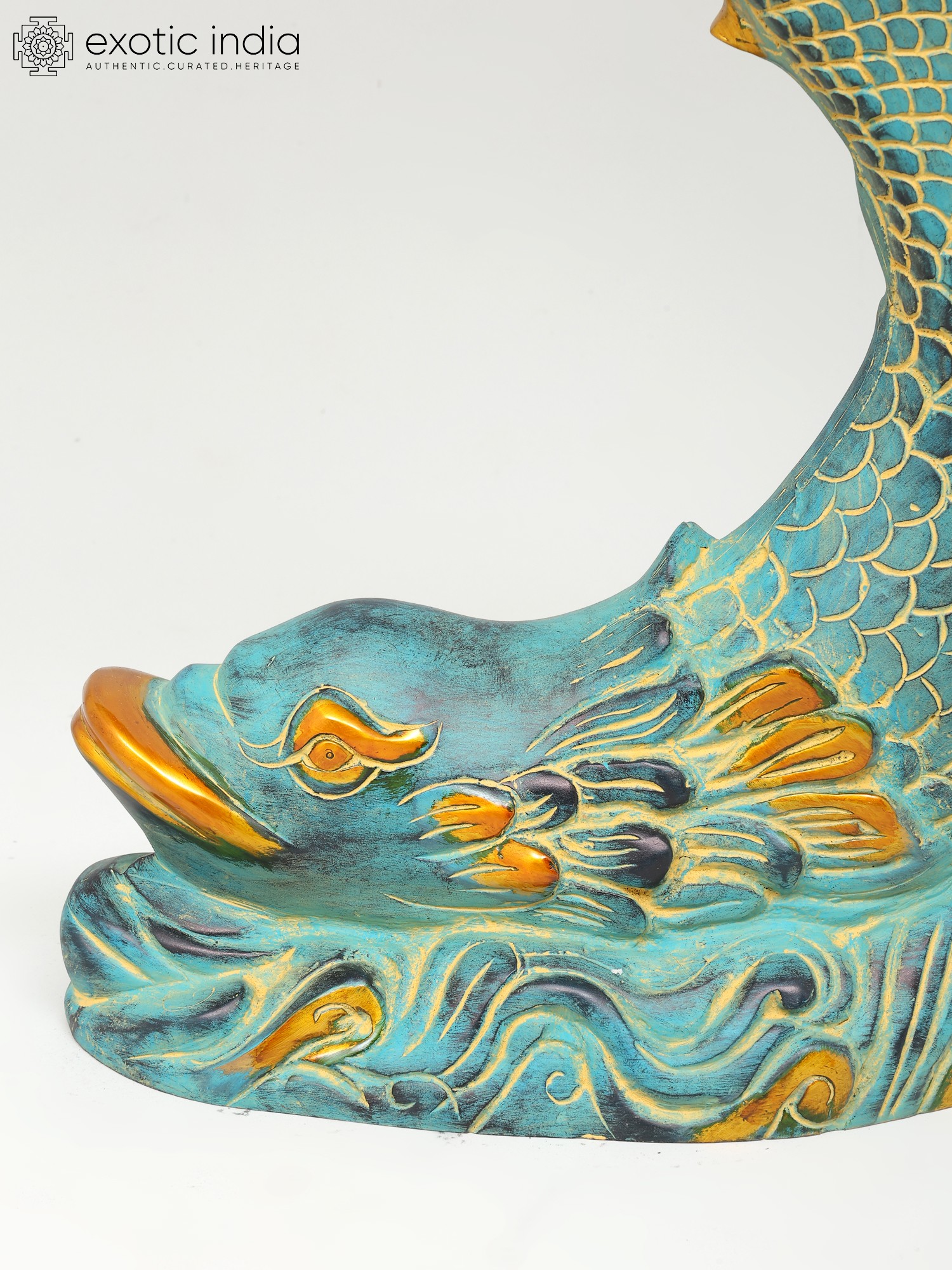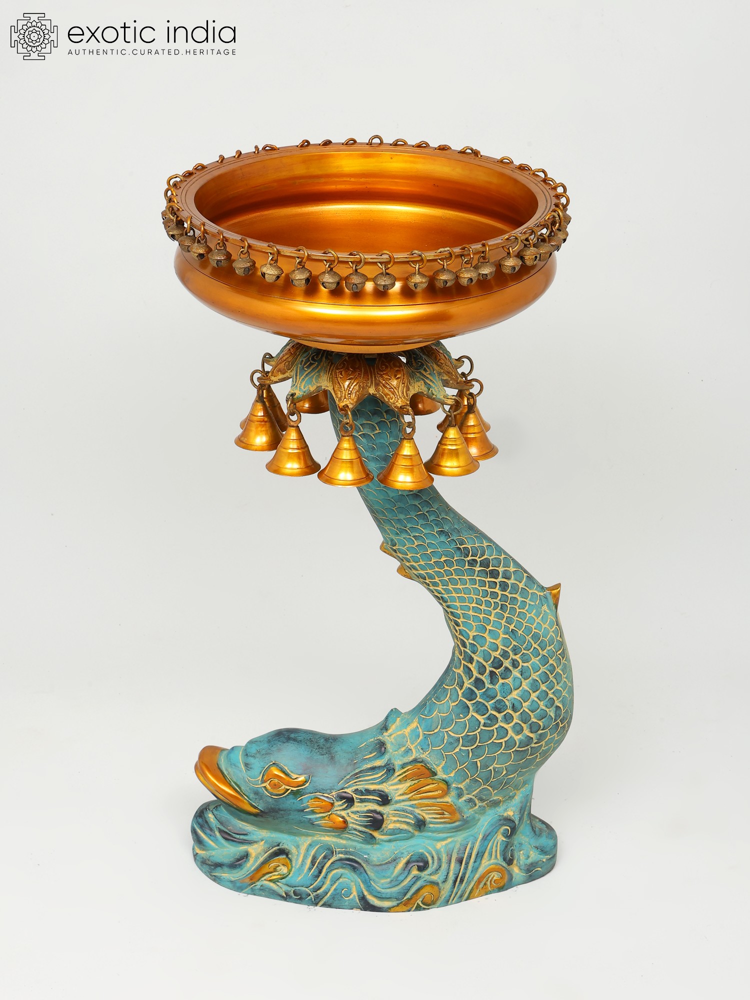Standing atop a Koi Yama Carp stand, this Urli bowl emits a stunning mix of cultures and artistic quality. The Urli is embellished with exquisite Ghungroos, which lend a touch of rhythmic appeal and musical intrigue. The painstaking craftsmanship on display at the Koi Yama Carp booth is inspired by Japanese traditional stories. The fish's scales are meticulously carved to capture its mythological character. The Koi Yama Carp's tail blooms like a brilliant flower, studded with beautiful bells that chime with every movement. This stunning ensemble combines the peaceful balance of traditions and artistry, resulting in a compelling centerpiece that embraces nature's beauty and cultural symbolism.