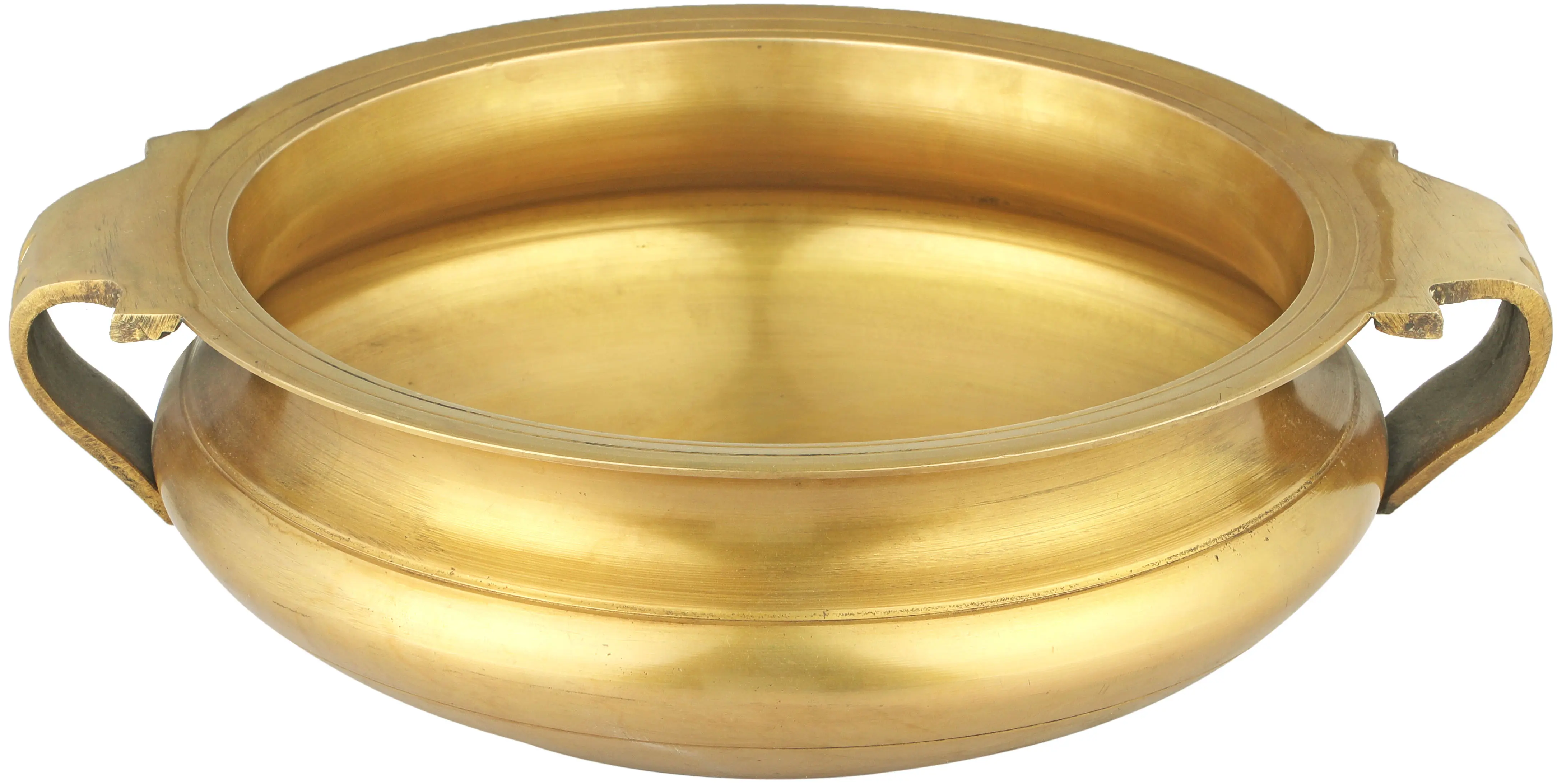 The warm, lustrous finish of this piece speaks to the quality of the brass used in its creation. Skilled artisans have meticulously crafted this item, ensuring its durability and timeless appeal. The piece features beautifully crafted handles, adding to its aesthetic appeal and making it easier to move and position within your home. The smooth curves and clean lines of the design showcase the artisan's attention to detail. The slightly aged finish adds to its vintage charm.