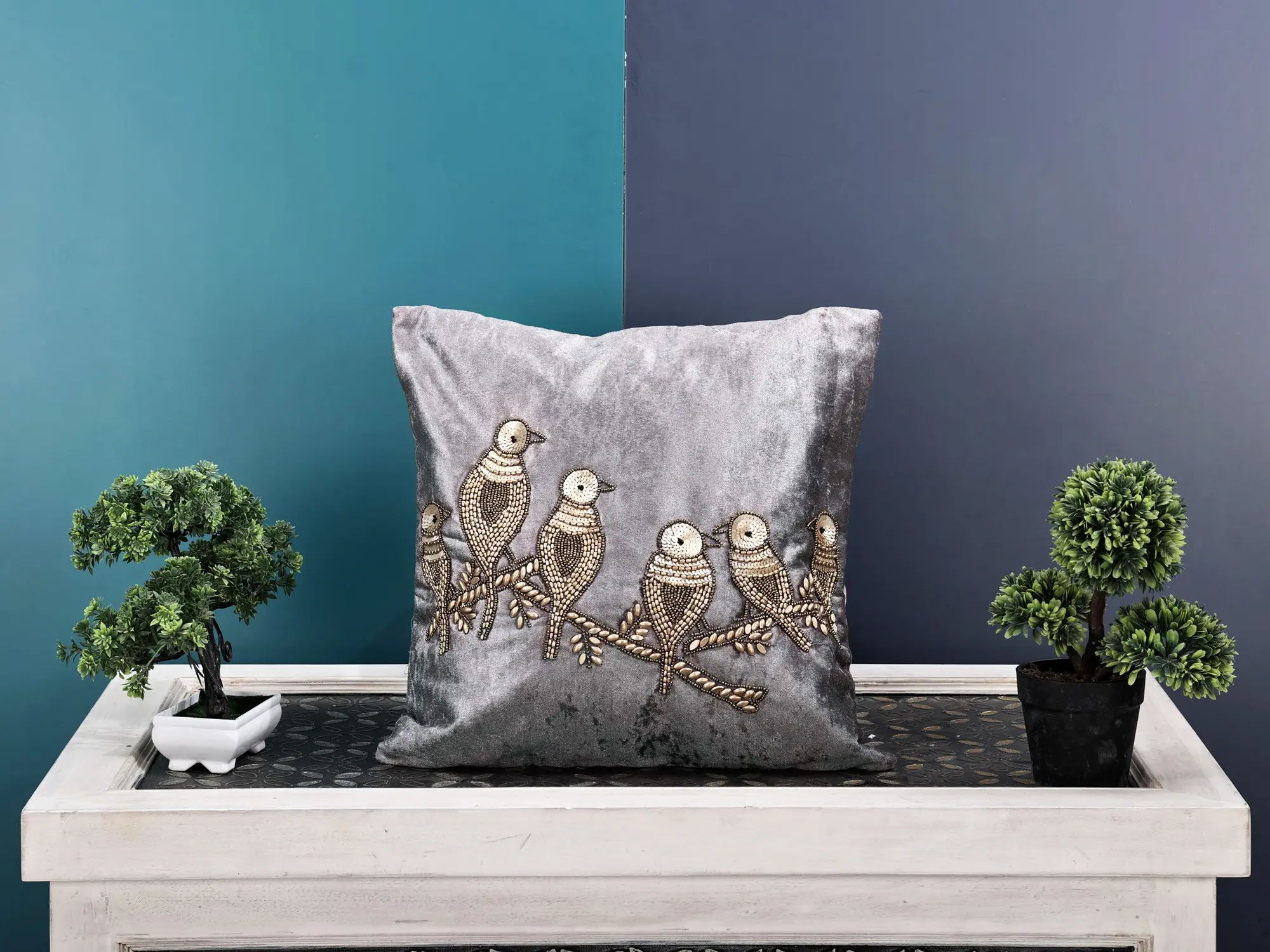 Exotic India Art's colourful and airy cushions would add charm to the beauty of your living area. These feathery cushions of birds are prepared with love and tepidness such is the artistry of beadwork. These striking velvet cushions are available in a variety of colours. To improve the elegance of your home decor, choose this exclusive delicate hand-embroidered birds cushion covers covered in bead and sequin work. With this vibrant velvet cushion cover, you can add a splash of colour and a touch of luxury to your furniture.