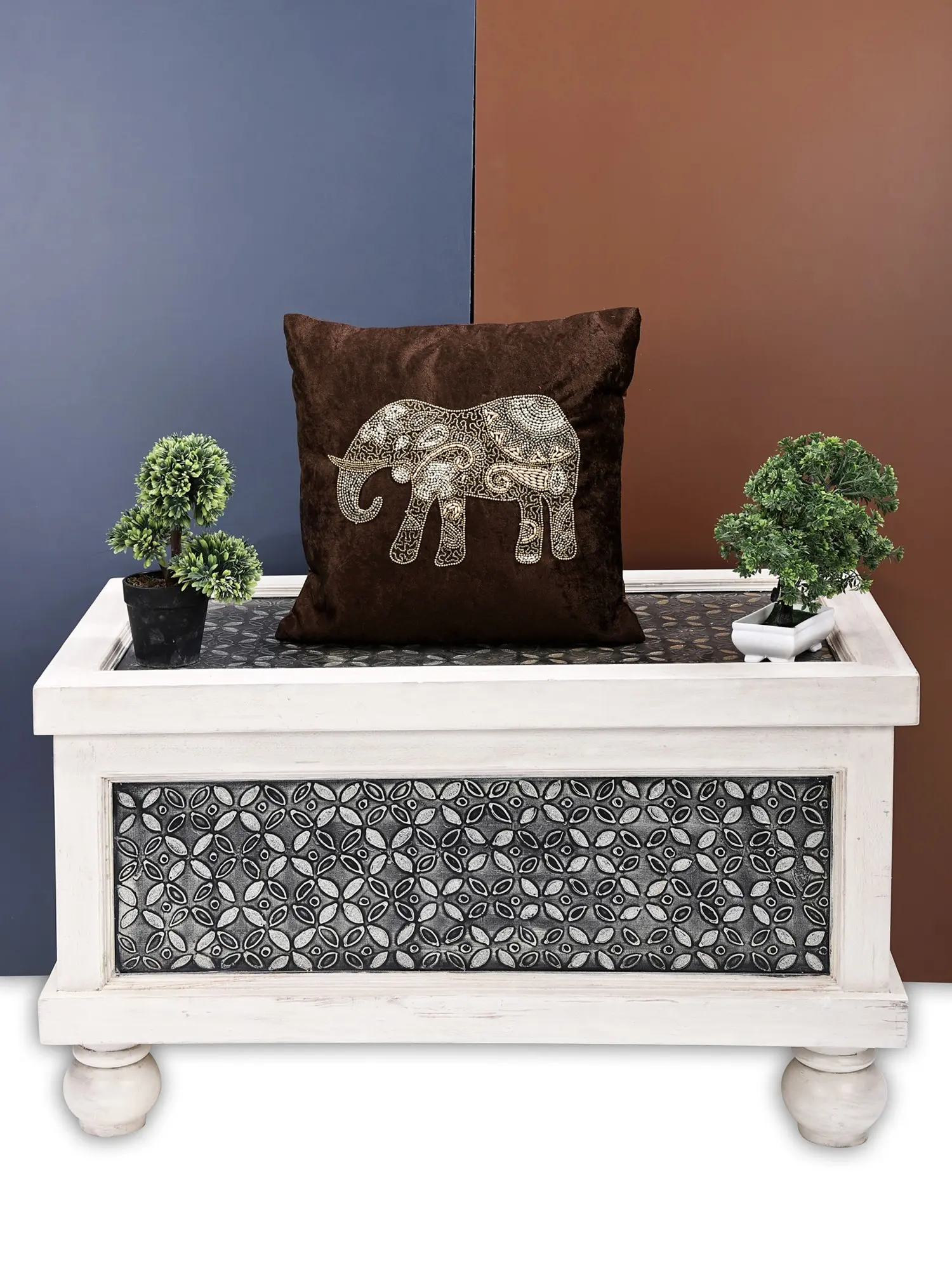 Traditional & Modern colourful handmade cushion Covers can be used to decorate your lounge, couches, and bed corners. Indian Cultural Elements have a touch that is so opulent and poised that it illuminates any home in which it resides! To improve the elegance of your home decor, choose this exclusive velvet hand embroidered elephant cushion cover with wonderfully designed hand beaded work. With this vibrant velvet cushion cover, you can add a splash of colour and a touch of luxury to your furniture.