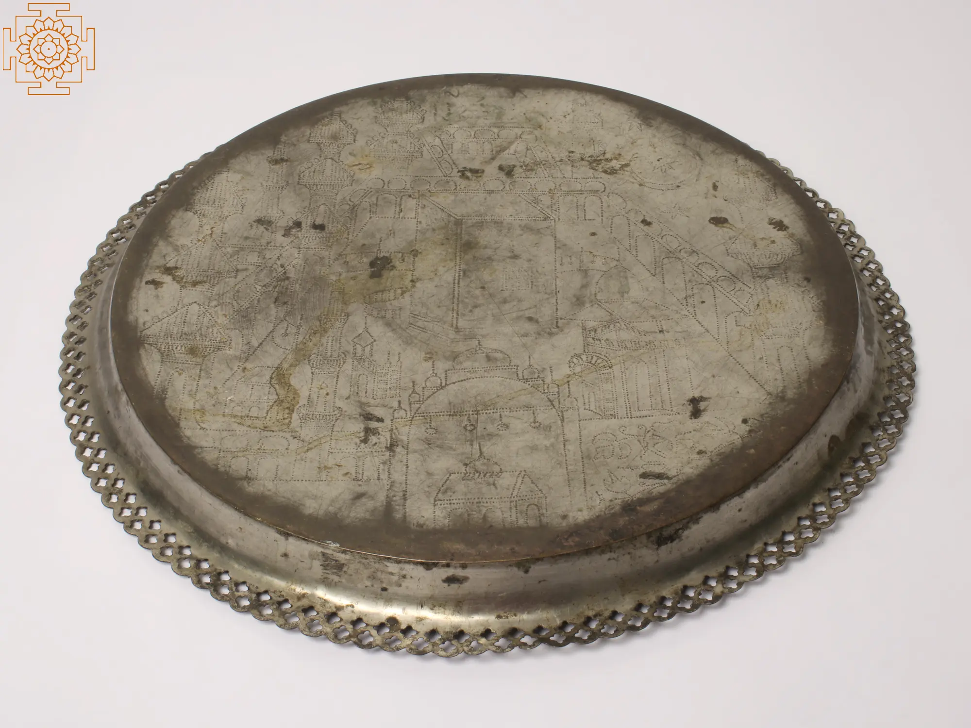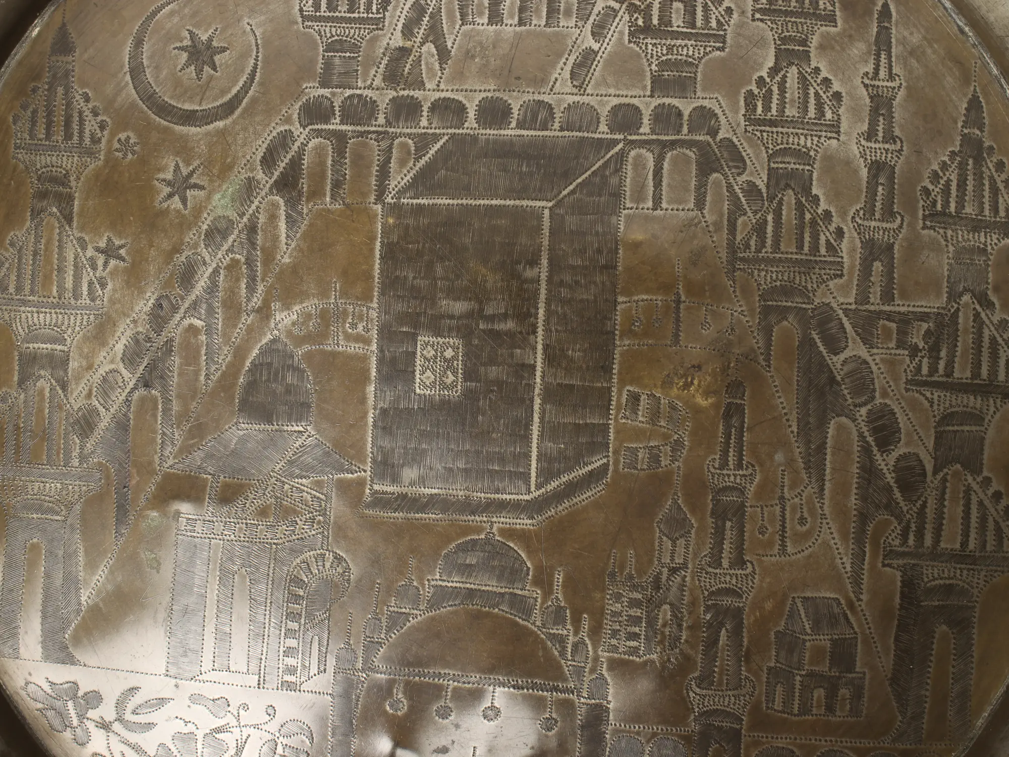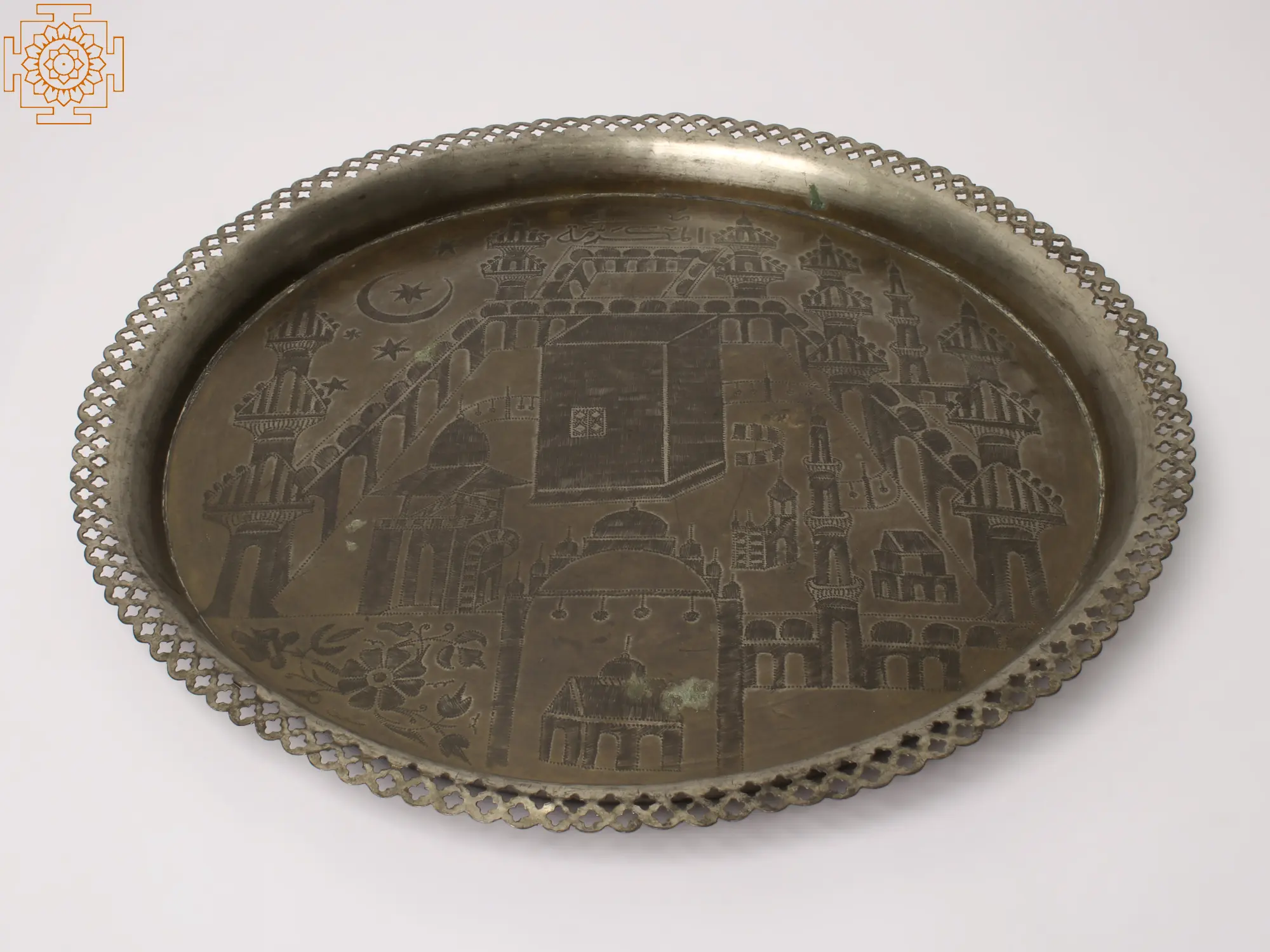 Embark on a journey through time with this Vintage Tray, a masterpiece that whispers tales of antiquity. Sculpted in bronze with meticulous detail, this tray showcases elaborate engravings inspired by the rich heritage of Mecca including a stunning representation of the “Kaabah”, the revered Shrine at the heart of Mecca. Each engraving tells a story of devotion and heritage, creating a connection to the sacred. This tray is a tangible odyssey, a vessel bridging eras and cultures, fostering reverence for the sacred and awe for the artistry of the ages. Bring an aura of cultural depth to your home with this classic gem, where craftsmanship meets spirituality.