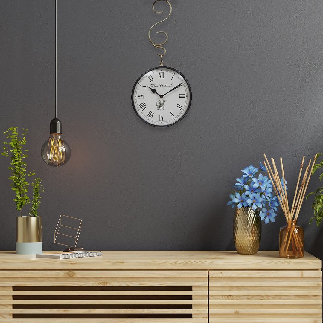 Crafted from high-quality iron, this clock is built to last. Its sturdy construction ensures durability and resilience, promising years of reliable timekeeping. The attention to detail is evident in every aspect of its design, from the smoothly finished frame to the precise positioning of the numerals. The elegant hanging bracket complements the overall design, adding to its graceful appeal. This clock is a testament to fine craftsmanship and a commitment to excellence.