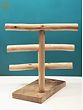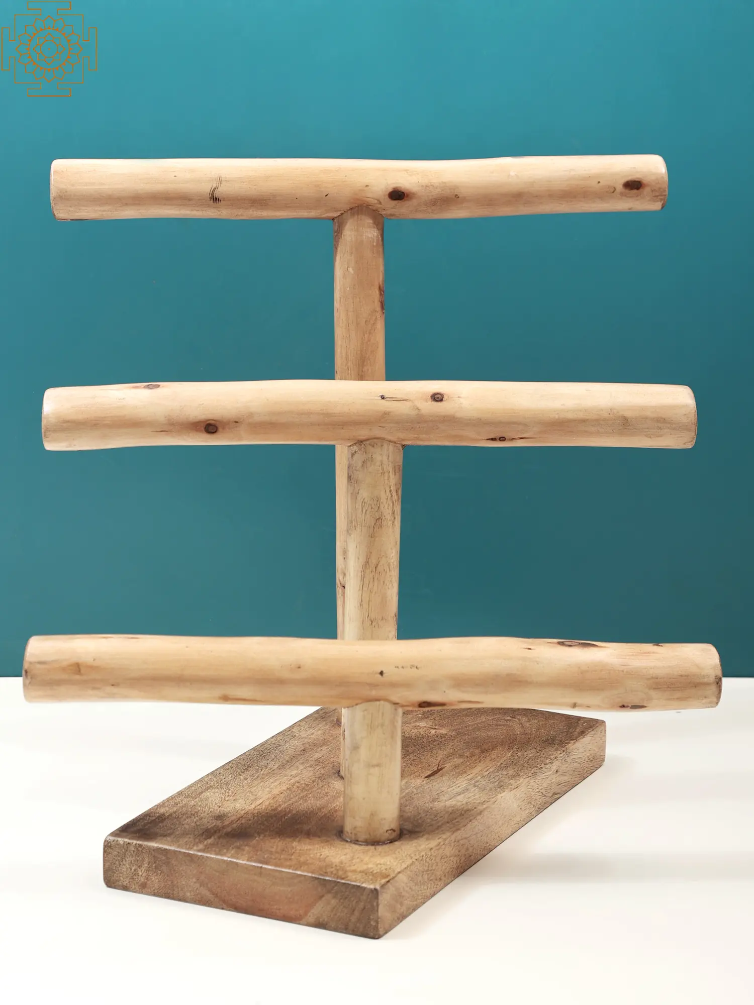 Meticulously crafted from premium wood, this stand features a robust base that ensures stability for your precious adornments. Three gracefully positioned bars rise vertically, each offering ample space to arrange and display multiple bangles. The smooth, natural finish of the wood is both tactile and visually appealing, complementing a wide range of interior aesthetics, from rustic and bohemian to modern minimalist. This isn't just a functional display piece; it's a work of art that adds warmth and personality to your vanity, dresser, or shelf. ––––––––––