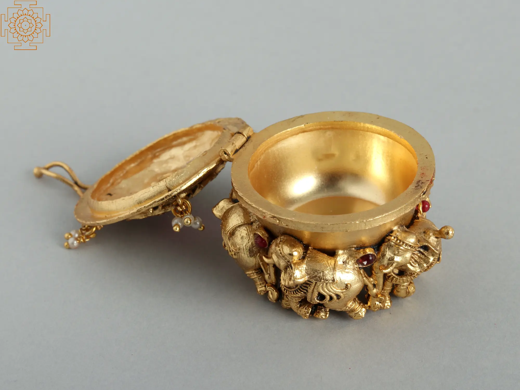 The elephant—the embodiment of strength and wisdom—adorns this sindoor, encircling the walks gracefully. The brass, polished to perfection, reflects light like memories. As you open it, feel the connection—to tradition, to blessings. Whether you wear sindoor or not, this box carries the weight of rituals and heritage. It’s a reminder that even mundane acts—applying sindoor, crossing thresholds—can be infused with grace.