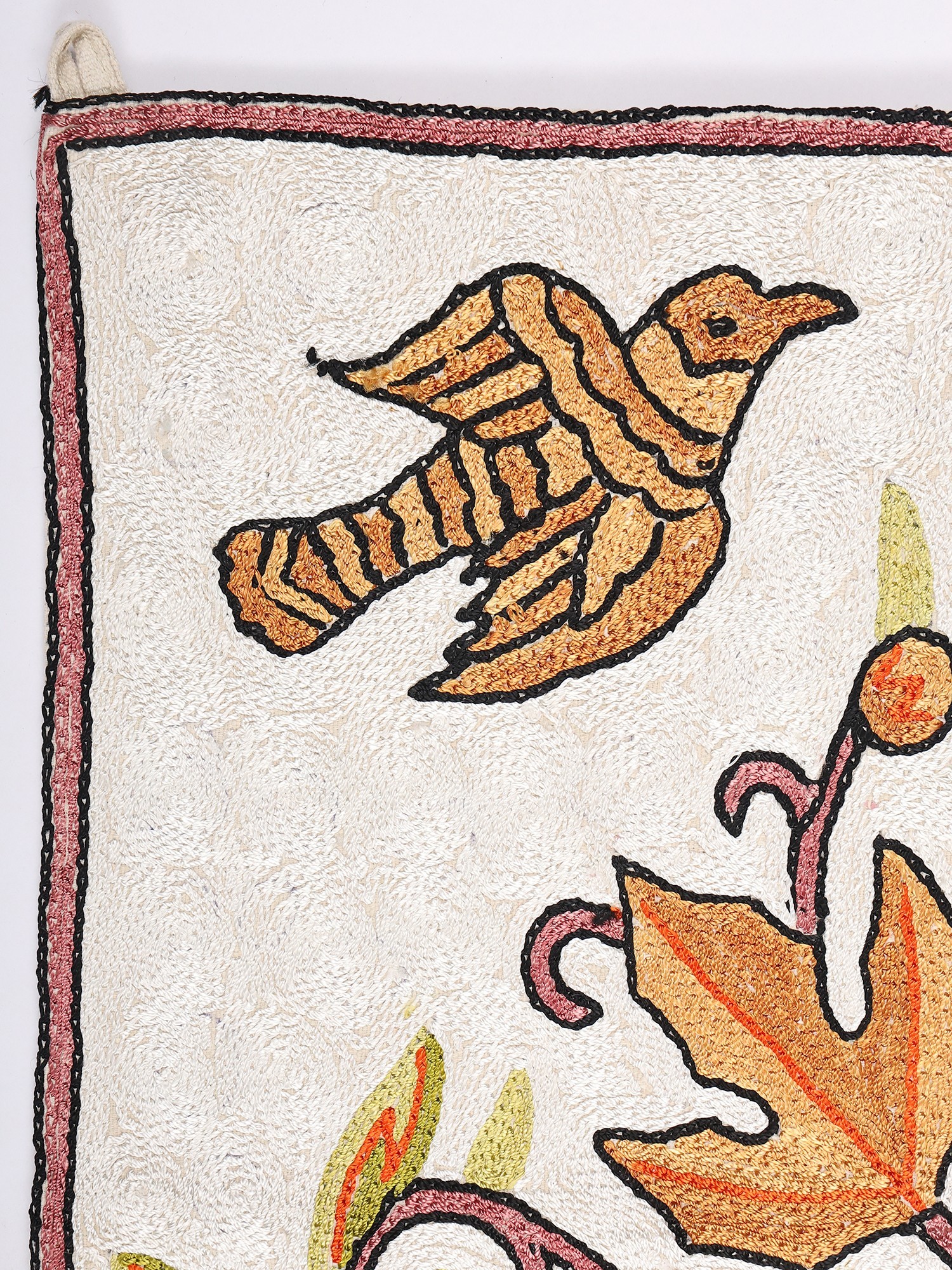 Multicolor Tree of Life Asana cum Wall Hanging with Embroidered Birds from Kashmir