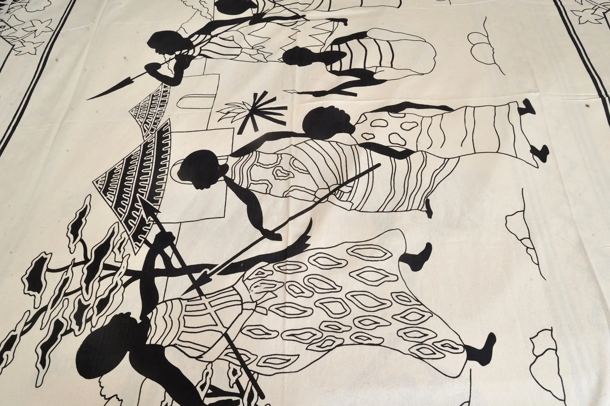 Transform your bedroom into a gallery of global art with this captivating bedspread. More than just bedding, it's a statement piece that celebrates the vibrant energy of African tribal folk art. The contrasting monochrome palette adds a touch of sophisticated simplicity, making it a versatile addition to any décor style. Imagine waking up each morning enveloped in the beauty of expressive, stylized figures that tell a silent story of community and culture. Crafted with meticulous attention to detail, the black and white motif is striking and memorable. The intricate patterns and fluid lines of the figures draw the eye, creating a focal point in your bedroom that sparks conversation and invites contemplation. This bedspread is perfect for those who appreciate unique, handcrafted pieces that add personality and character to their living space.
