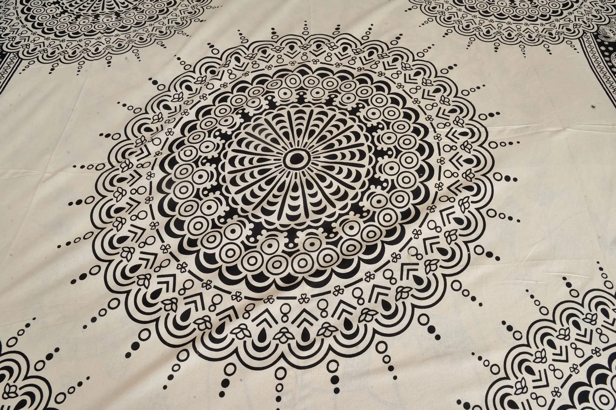 Relish the balance of yin and yang when you use this bedsheet. Forged in pure cotton, its gentle touch pulls you into a sanctuary of happiness. The contrasting colors imply balance while the designed chakras signify harmonisation of mind, body, and spirit. Enrich your space with this sacred emblem, a reminder of inner calm and enlightenment.