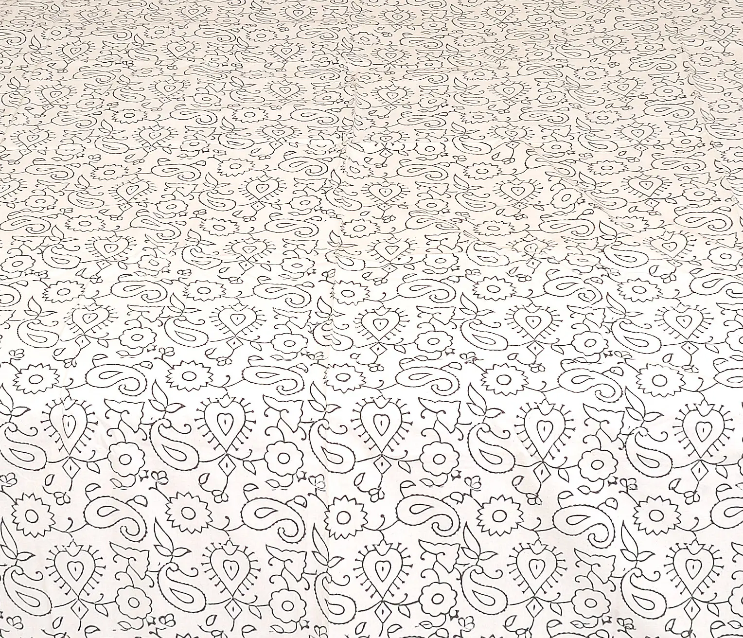 Bright-White Bedspread from Jaipur with Printed Bootis and Flowers