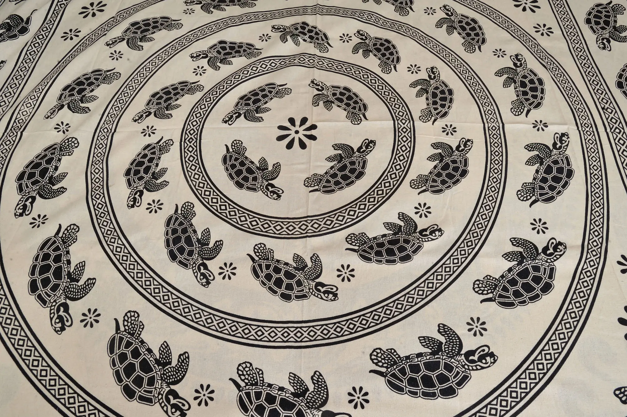 This bedsheet, made from pure cotton, embodies serenity and balance, enhancing your space with its elegant design. The symbolic representation of tortoises in the mandala signifies longevity, stability, and protection according to Vastu principles, ushering positive energies into your home. Drift into a peaceful slumber wrapped in comfort, as this bed-sheet comes with pillow covers for a complete experience. Enrich your sleeping experience and invite auspicious energies with this enchanting addition to your decor.