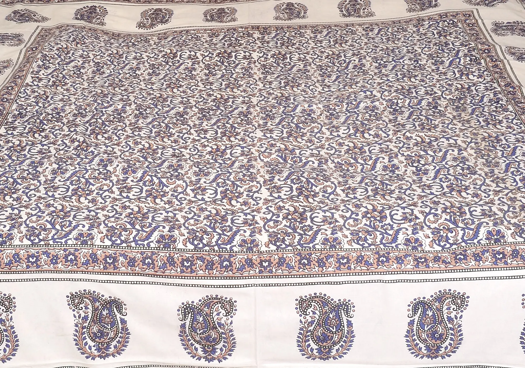 White and Blue Bedspread from Pilkhuwa with Floral Print