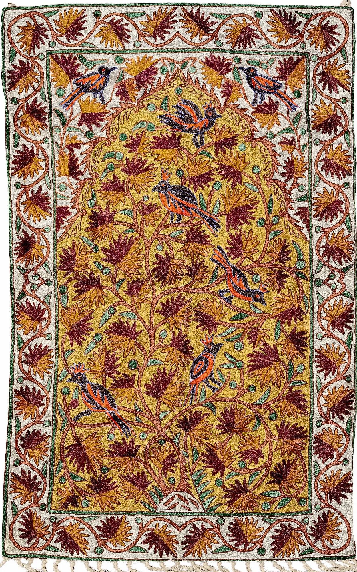 Pure Silk Jamawar Bedspread with Woven Birds and Trees of Life