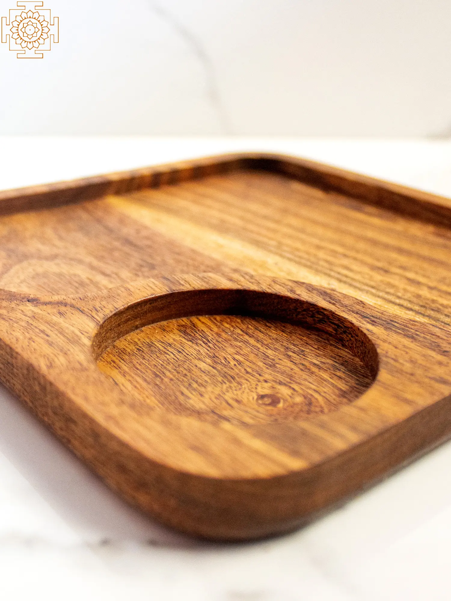 Acacia wood trays, a new trend in dinnerware, come in a variety of forms. This wooden coffee cookie plate is a welcome contribution to the growing trend of combining practicality with minimalist elegance. The tray has a cup storage area as well as a larger space for cookies, allowing you to keep both items in one place. This is a must-have for everyone who appreciates unusual yet functional items.