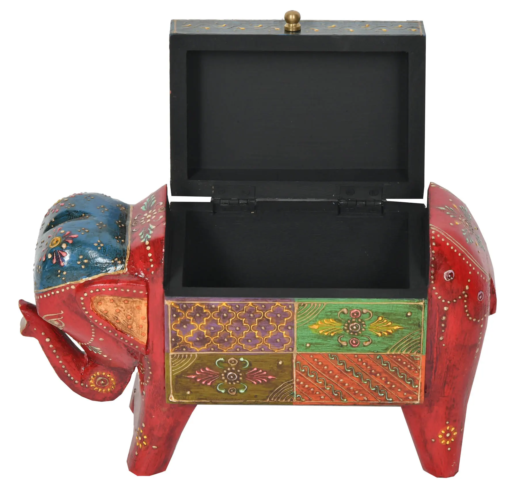 11" Hand Painted Elephant Decorated Boxes | Handmade Mango Wood Box | Made in India