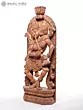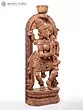 Crafted from wood with intricate carvings depicting divine ornamentation and a serene expression.