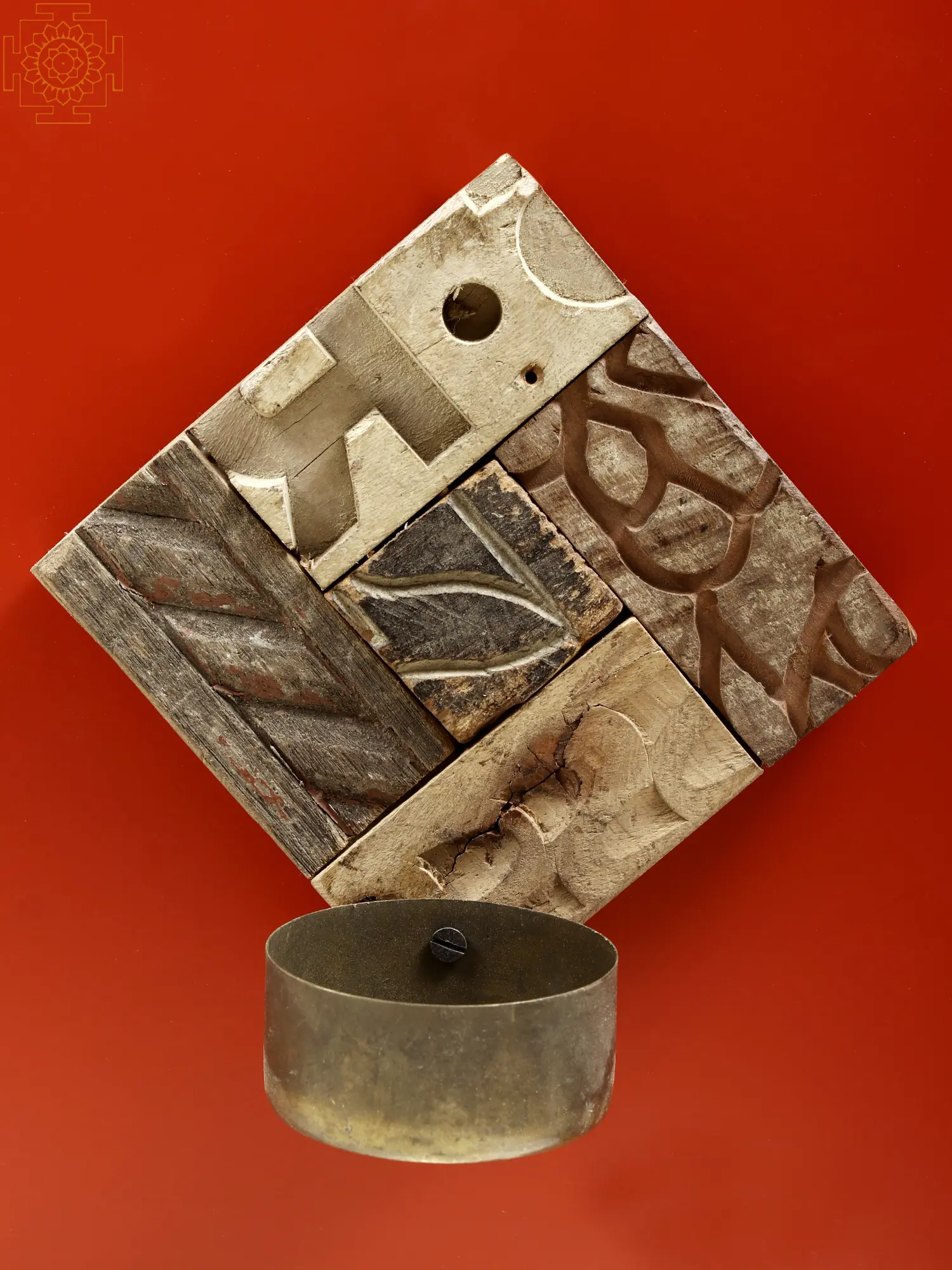 The rustic charm of this Wooden Vintage Candle Stand is unimaginable. The crown of this exquisite candle holder is adorned with wooden blocks, reminiscent of traditional printing blocks, lending a unique historical touch. Each block tells a story through its weathered texture and intricate carvings. The juxtaposition of the vintage wooden crown and the functional iron bowl creates a harmonious blend of artistry and utility. As the candlelight dances within the iron bowl, it casts a warm, enchanting glow, transforming any space into a nostalgic haven. Embrace the craftsmanship of eras past with this Wooden Vintage Candle Stand, a true testament to timeless elegance.