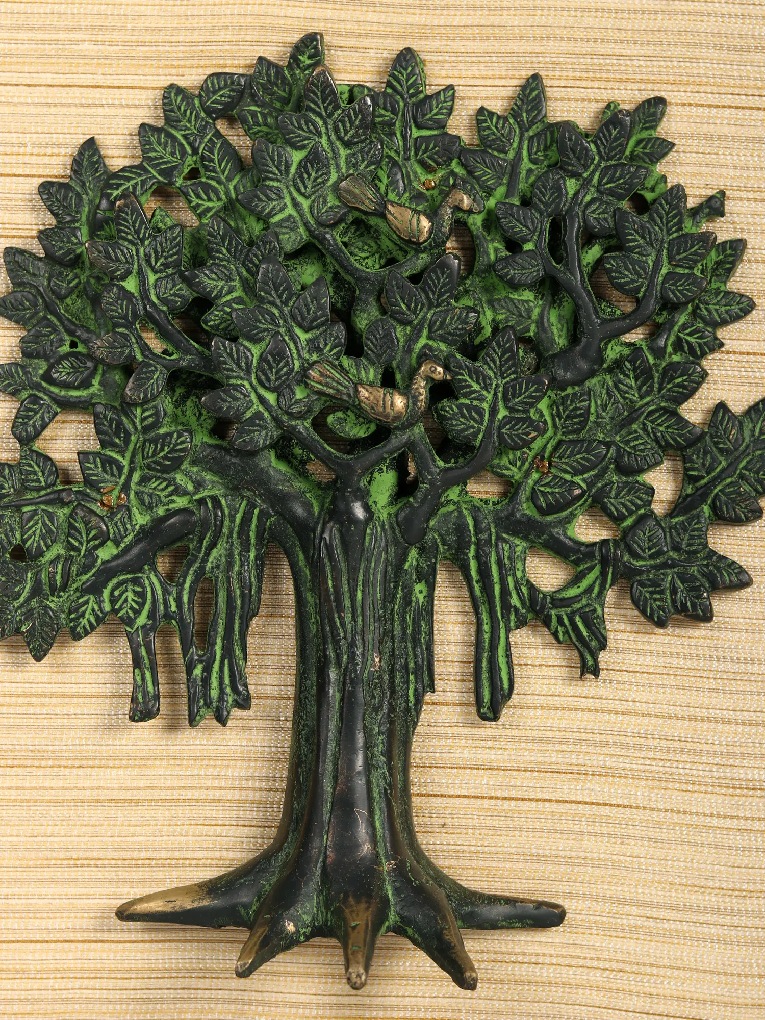 • Features a meticulously detailed brass tree sculpture with small birds perched on its branches.
