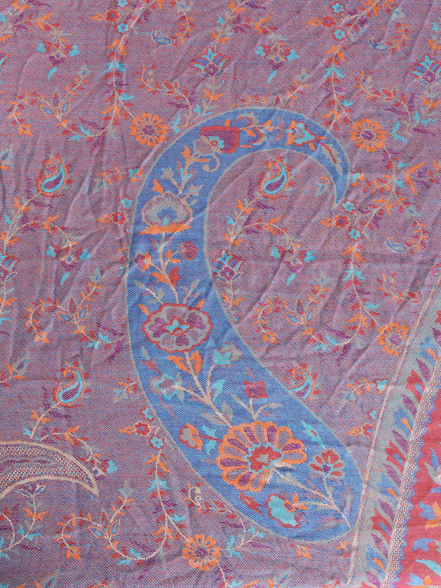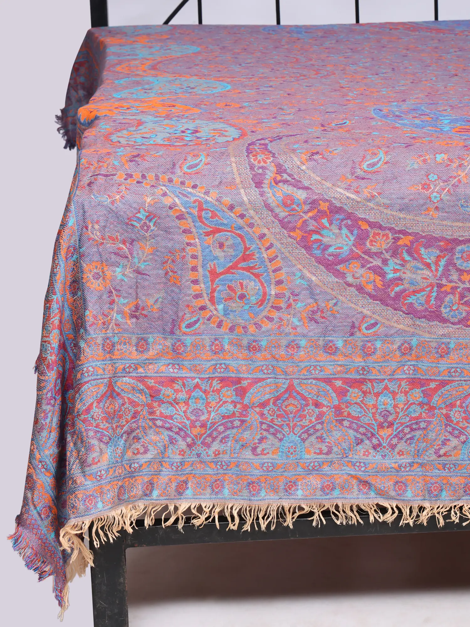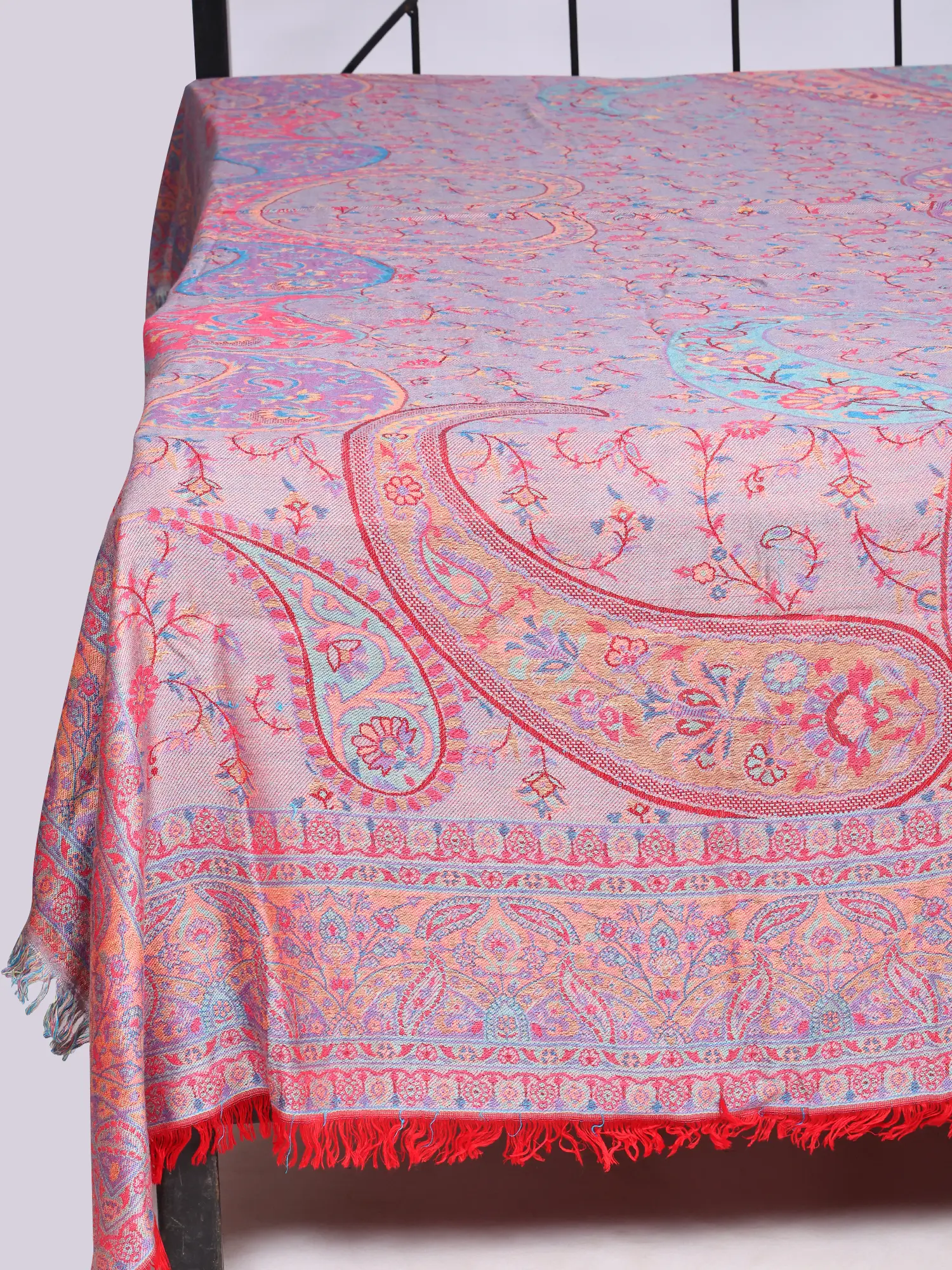 Woven Queen Bedsheet: Multicolor Reversible Jamawar with Paisley-Floral Design