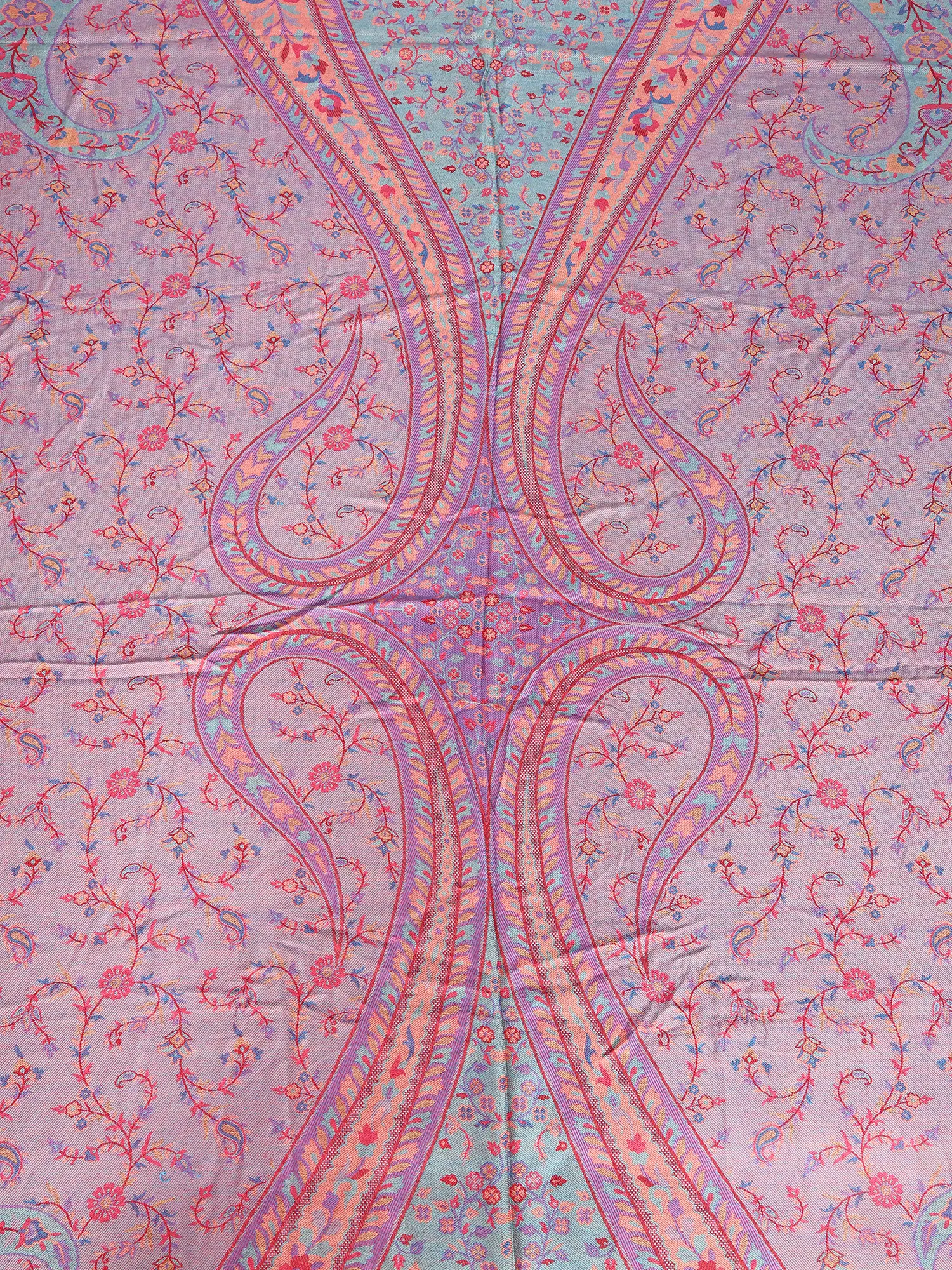 Reversible Jamawar Bedspread with Woven Tree of Life