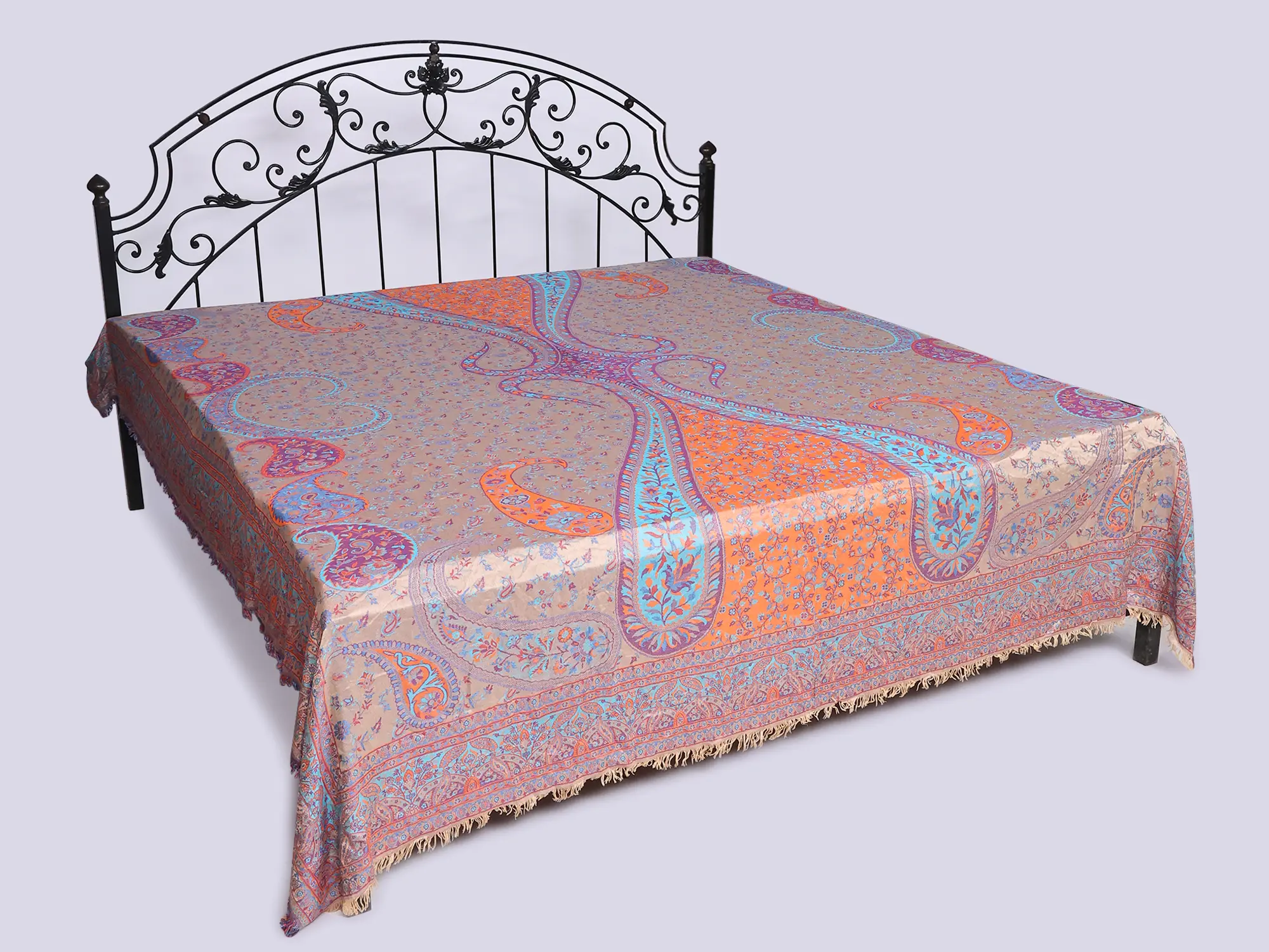 Queen Size Bedspread: Reversible Jamawar Paisley Design