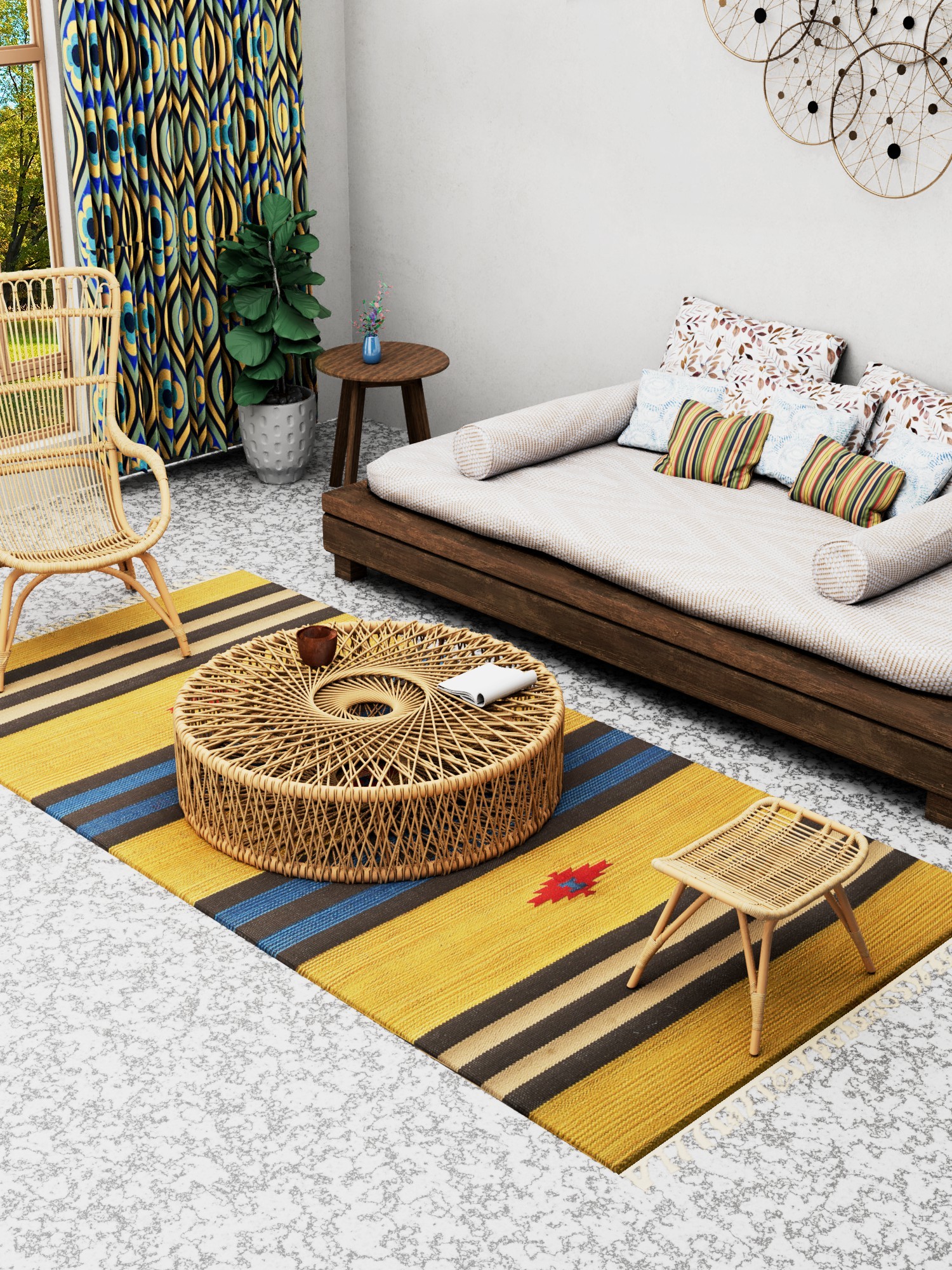 Transform your living room, bedroom, or hallway with a touch of warmth and rustic charm. This piece is more than just a floor covering; it's an infusion of color and texture, designed to brighten up any space. Imagine stepping onto its soft, pure cotton fibers each morning, a gentle welcome to the day. The warm hue acts as an instant mood lifter, radiating positivity and creating an inviting ambiance for you and your guests. The versatile size makes it ideal for a variety of uses. Place it under a coffee table to define a cozy seating area, use it as a vibrant accent rug in your bedroom, or even hang it as a unique wall tapestry to showcase its beautiful craftsmanship. Its understated elegance allows it to seamlessly integrate into a wide range of decor styles, from bohemian and eclectic to minimalist and modern.