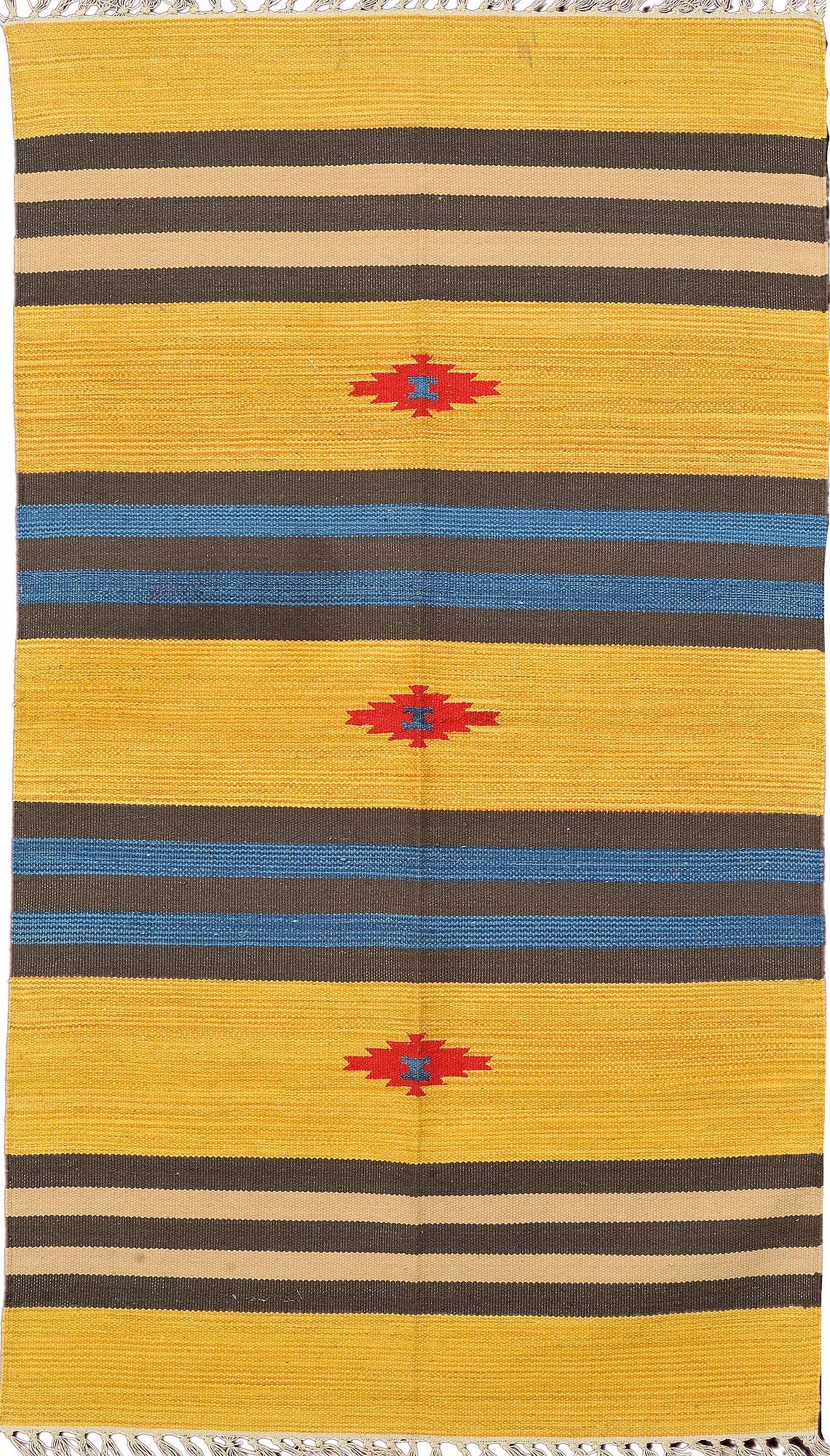 Yellow and Gray Dhurrie from Sitapur with Woven Stripes