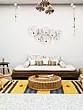 This piece can act as a focal point or a subtle complement to your existing decor. Consider pairing it with neutral furniture and accessories to allow its vibrant colors to truly shine. Alternatively, you can create a bold and eclectic look by combining it with other colorful textiles and patterns. To keep your dhurrie looking its best, regular vacuuming is recommended. For spot cleaning, gently blot spills with a clean, damp cloth. Professional cleaning is recommended for deeper cleaning. With proper care, this dhurrie will continue to bring joy and beauty to your home for years to come.