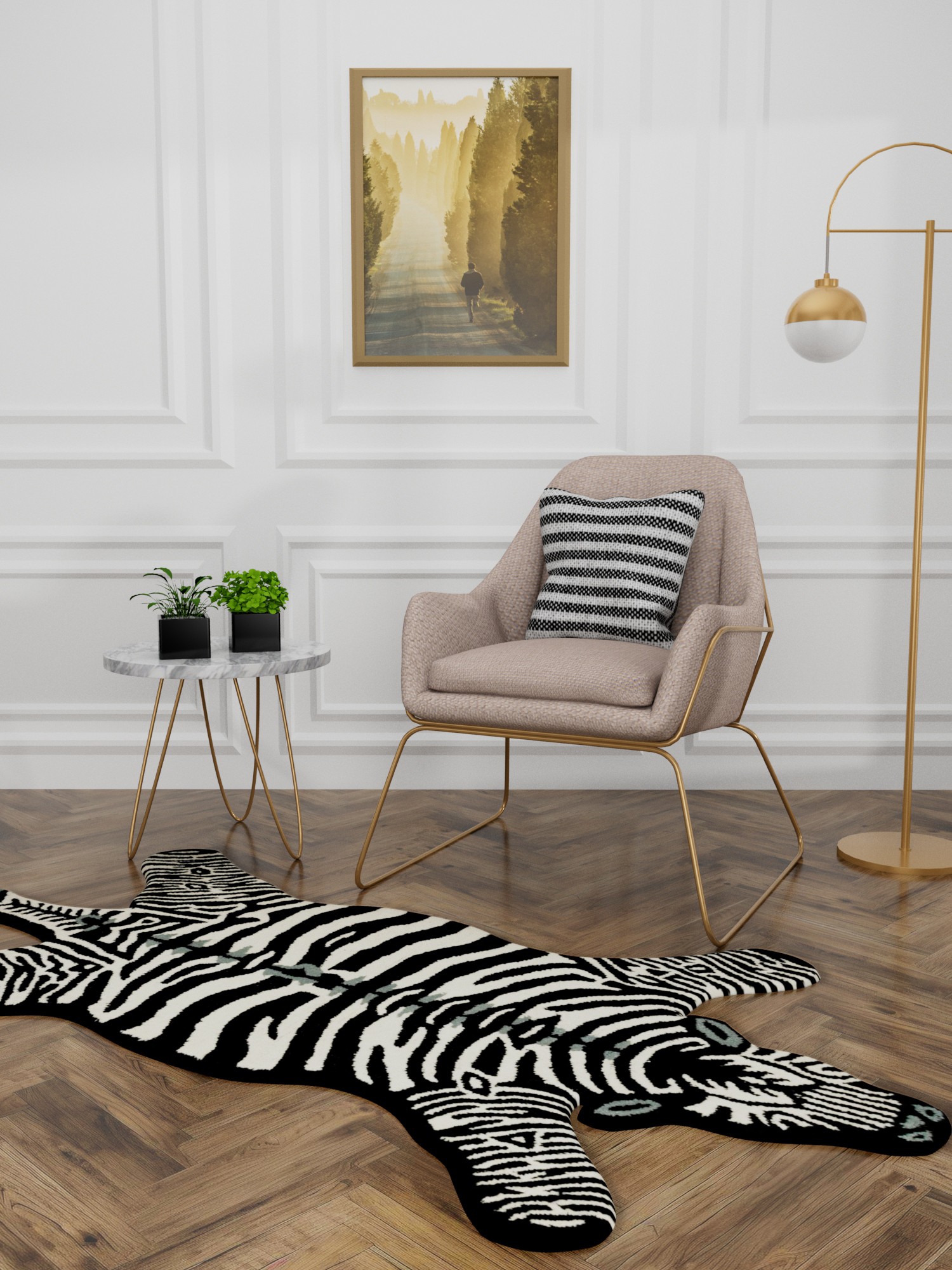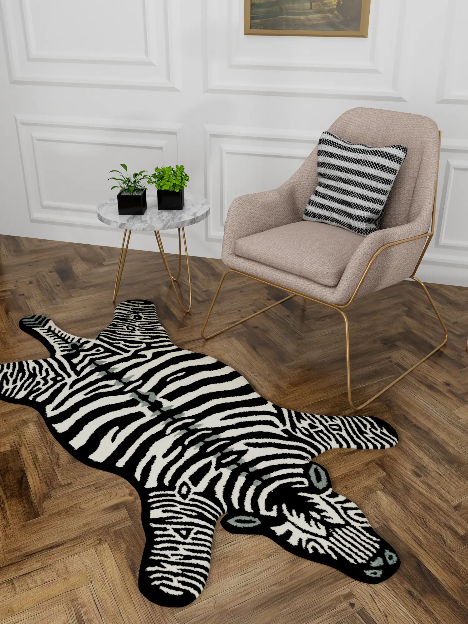 This novel woolen Mat from Mirzapur celebrates the innovation of local Uttar Pradesh artists, renowned for their traditional carpets and kilims. Crafted from pure wool, this modern and chic floor decor features a zebra on all fours. The minimalistic black-and-white color palette effortlessly blends with any interior, adding a touch of sophisticated appeal.