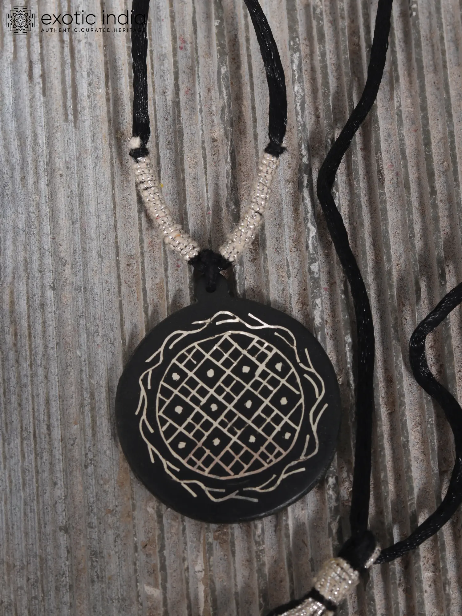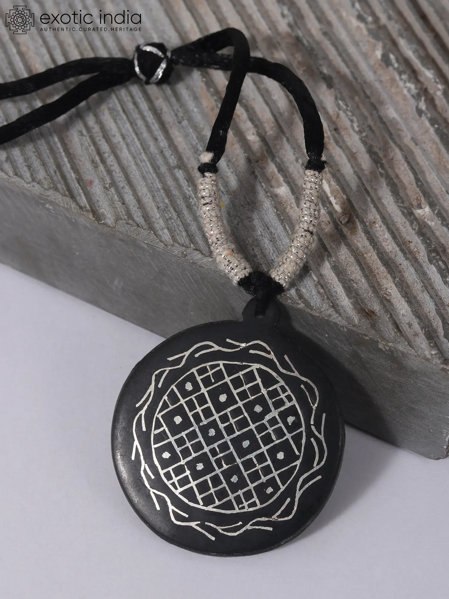 This Small Beautiful Round Pendant, crafted with Bidri Artwork from Gunmetal embellished with Real Silver, is a stunning example of exquisite craftsmanship. The intricate designs and silver detailing showcase the mastery of Bidri artisans, known for their precision and artistry. The pendant's round shape adds a touch of elegance, while the shimmering silver accents enhance its beauty with a luxurious allure.