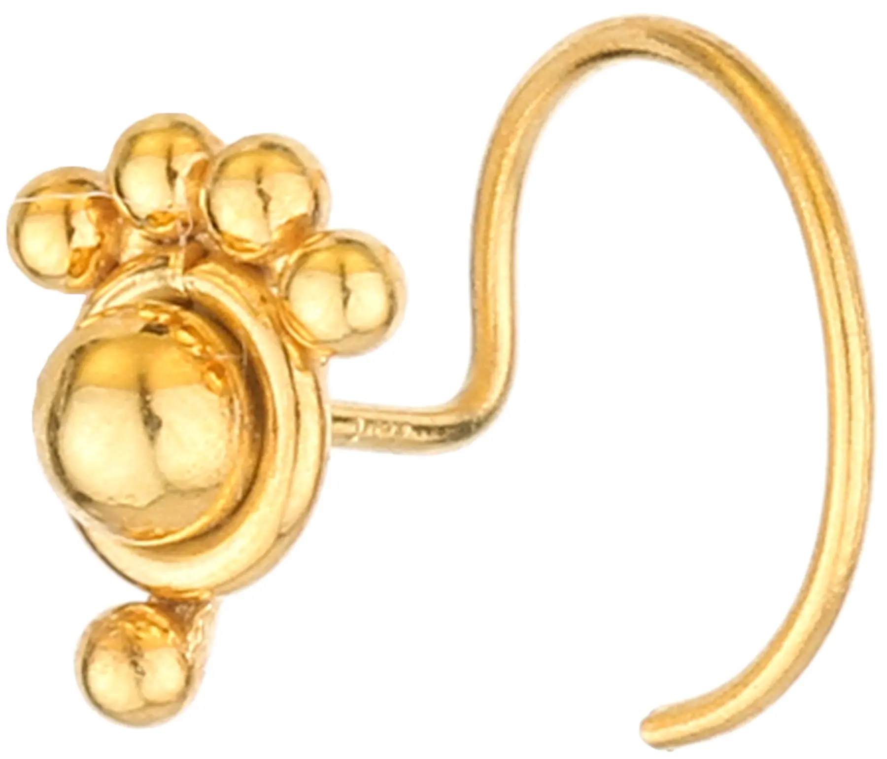 The design features a central, domed element encircled by a delicate arrangement of smaller, perfectly rounded spheres, reminiscent of a cluster of precious pearls or a blooming flower. This intricate pattern, carefully rendered in solid 18 K gold, offers a sophisticated textural interplay. The slender hoop, measuring a mere .56 mm in gauge and a discreet 4 mm in length, is designed for comfortable and secure wear, seamlessly integrating into your personal adornment.