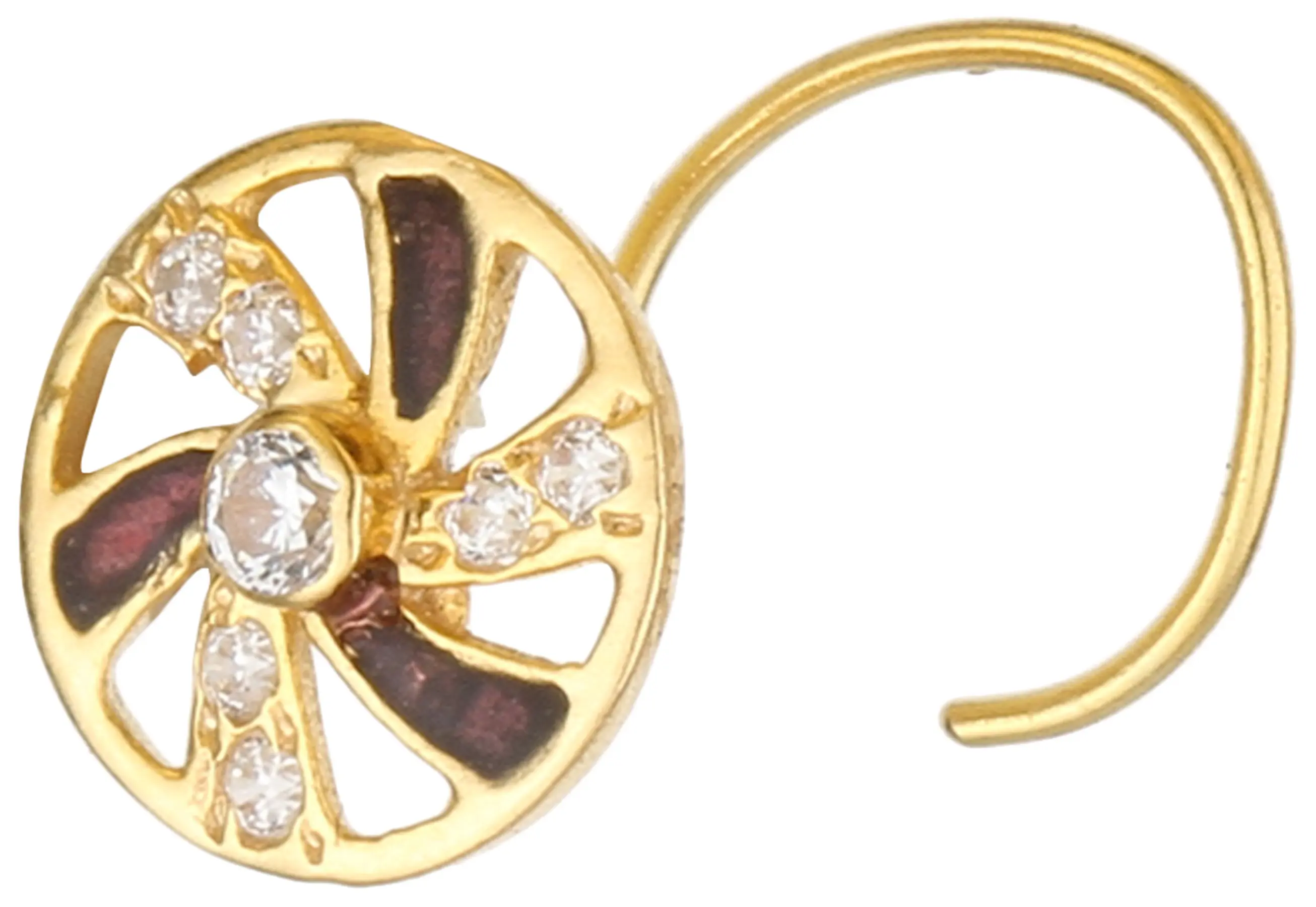 18K Gold Nose Pin with Cubic Zirconia and Enamel