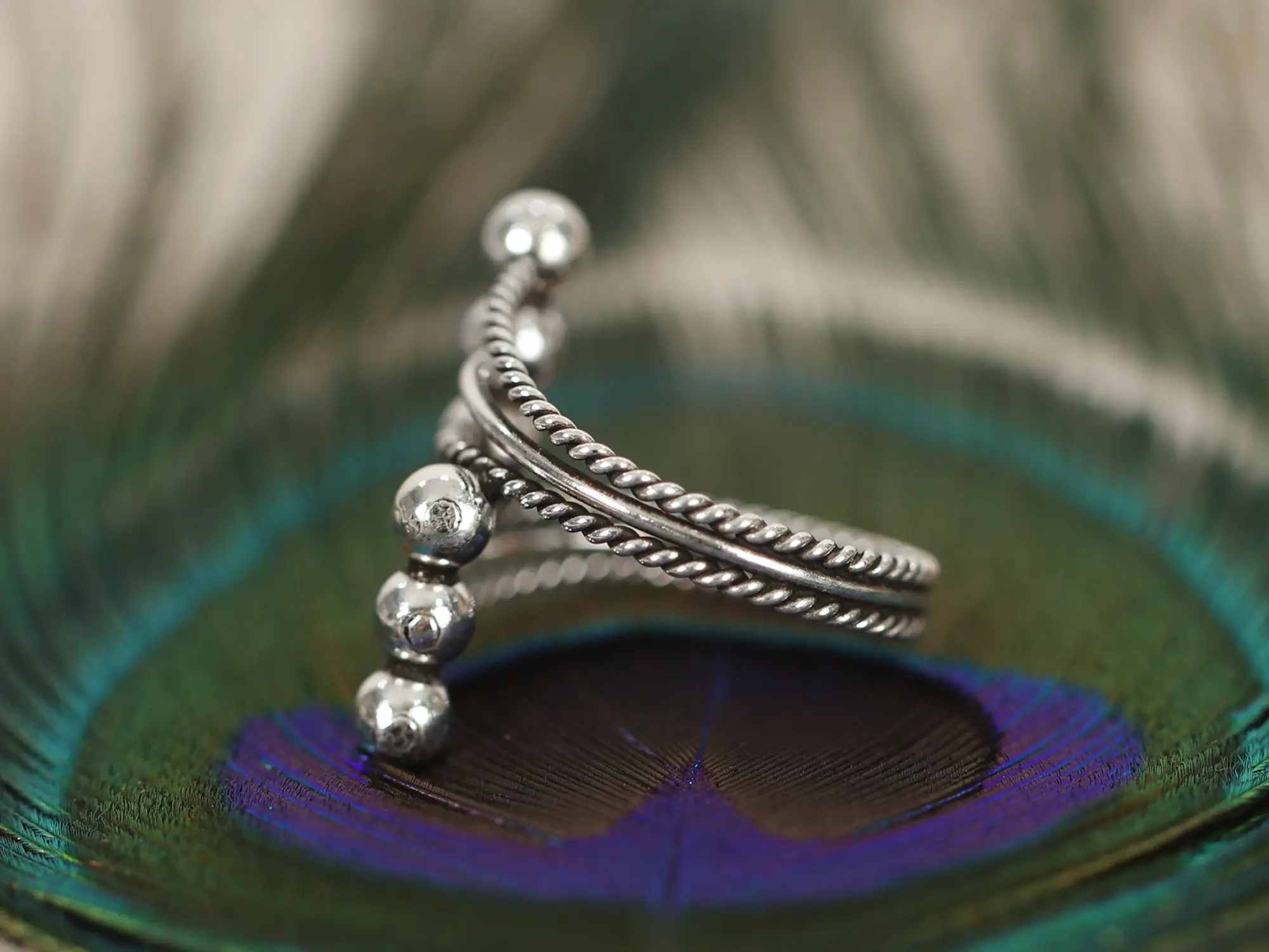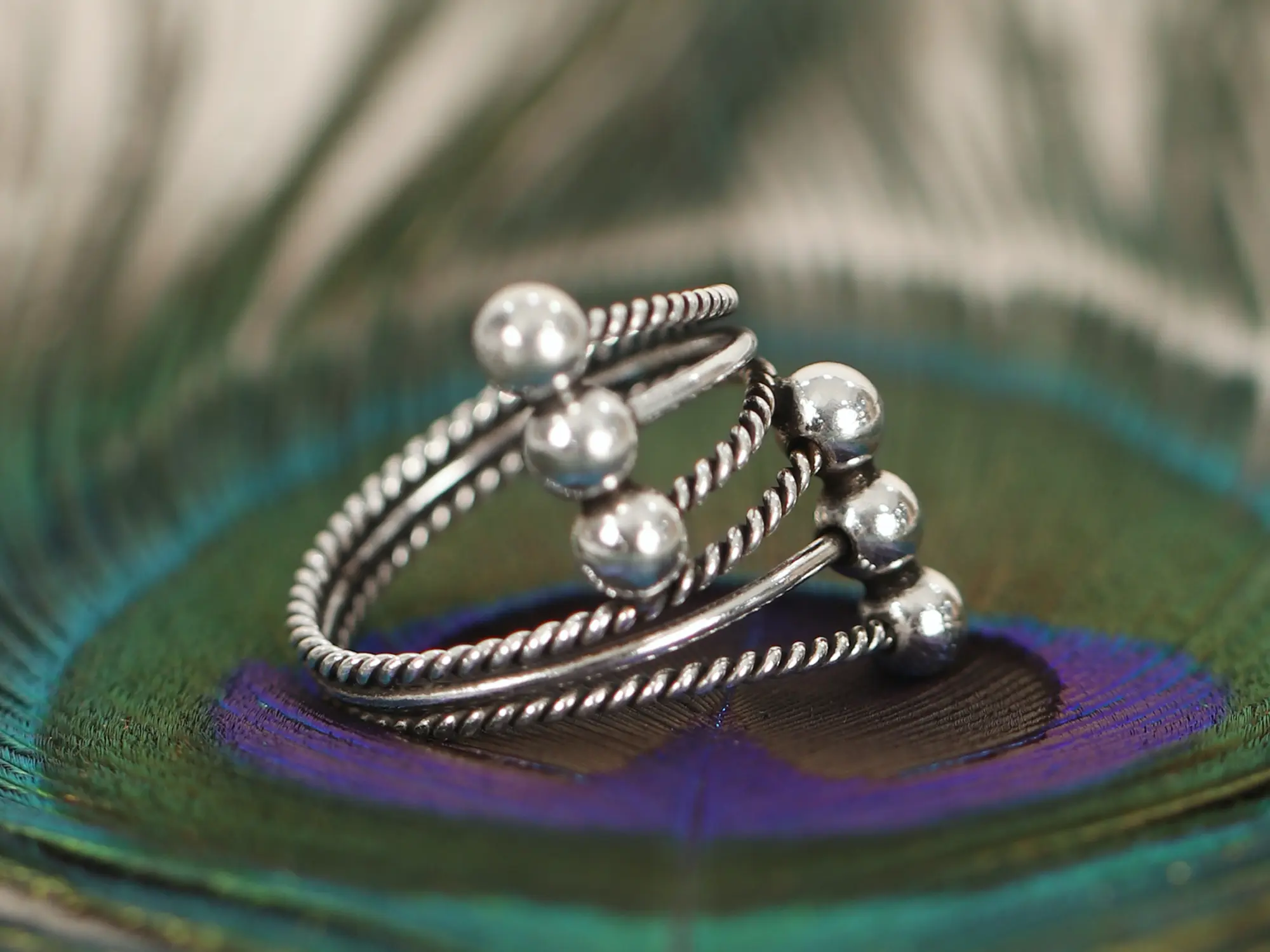 Adorn your finger with this rustic beauty featuring an adjustable band of the ring and metallic beads to enhance the beauty of it.