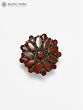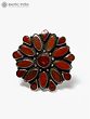 This exquisite ring is a captivating blend of artistry and nature's beauty. The centerpiece is a stunning floral design crafted from polished sterling silver, meticulously detailed to create a three-dimensional effect. The petals of the flower are represented by richly hued, naturally-occurring coral stones, each carefully selected and set to maximize its unique luminescence. The deep, warm tones of the coral contrast beautifully with the cool gleam of the silver, creating a visually striking piece that commands attention. The coral's organic variations in color and texture add a touch of individuality to each ring, ensuring that yours is truly one-of-a-kind. Wear this ring to add a touch of elegance and sophistication to any outfit, from casual daytime looks to more formal evening attire.