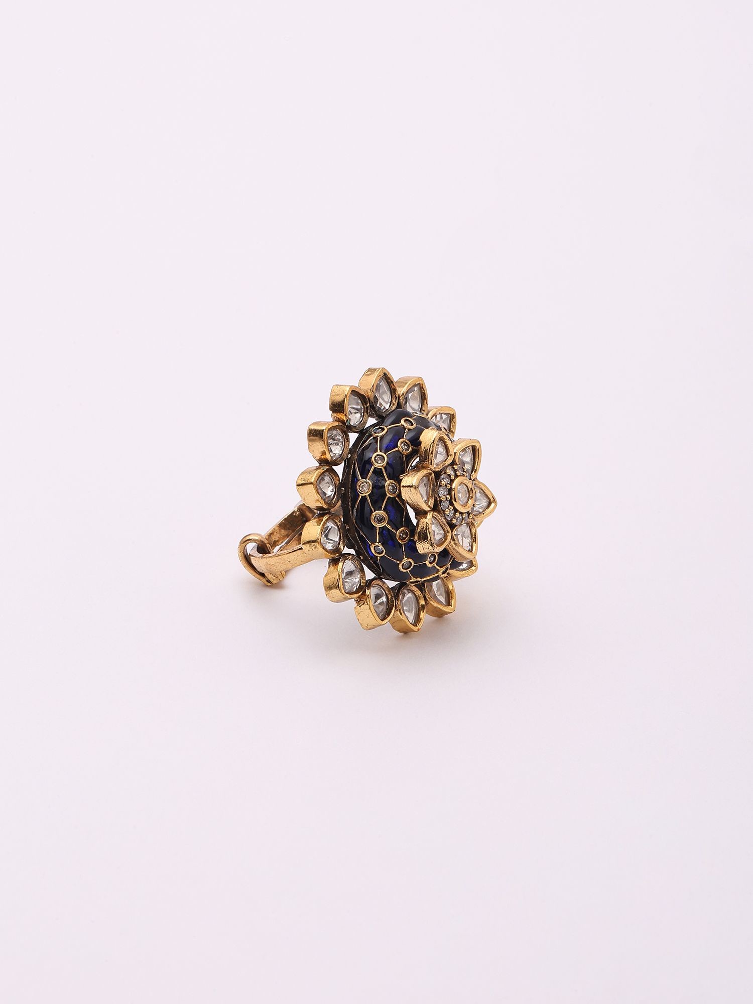 Adjustable Kundan Ring with Purple Gemstone Flower Design