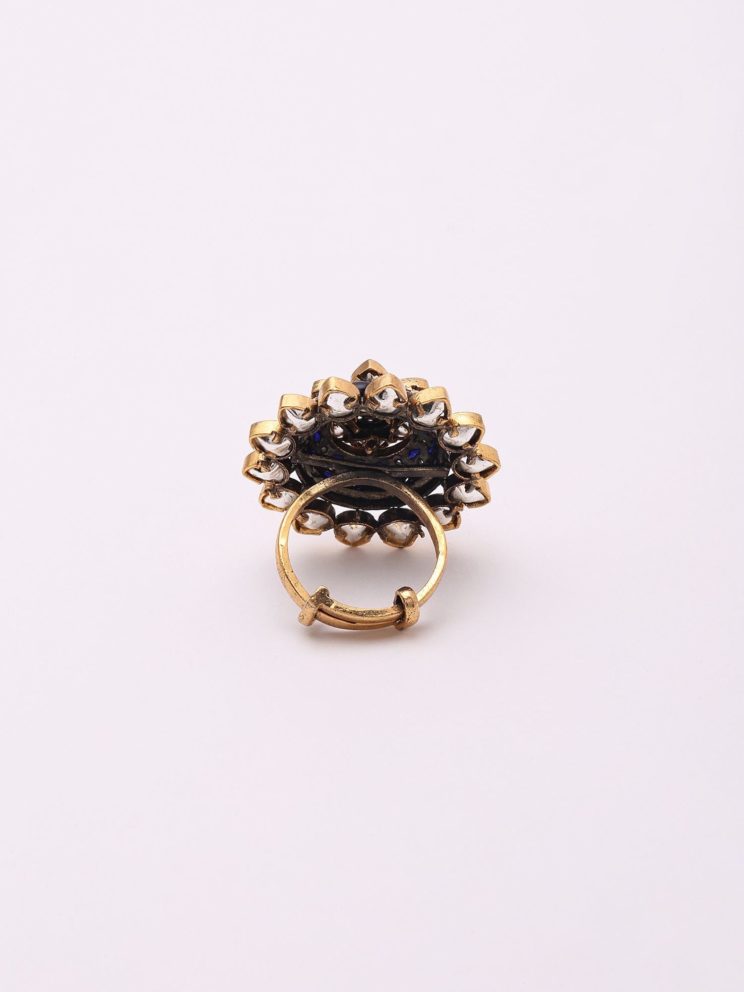 Kundan Adjustable Ring with Multicolor Stones and Pearl Border