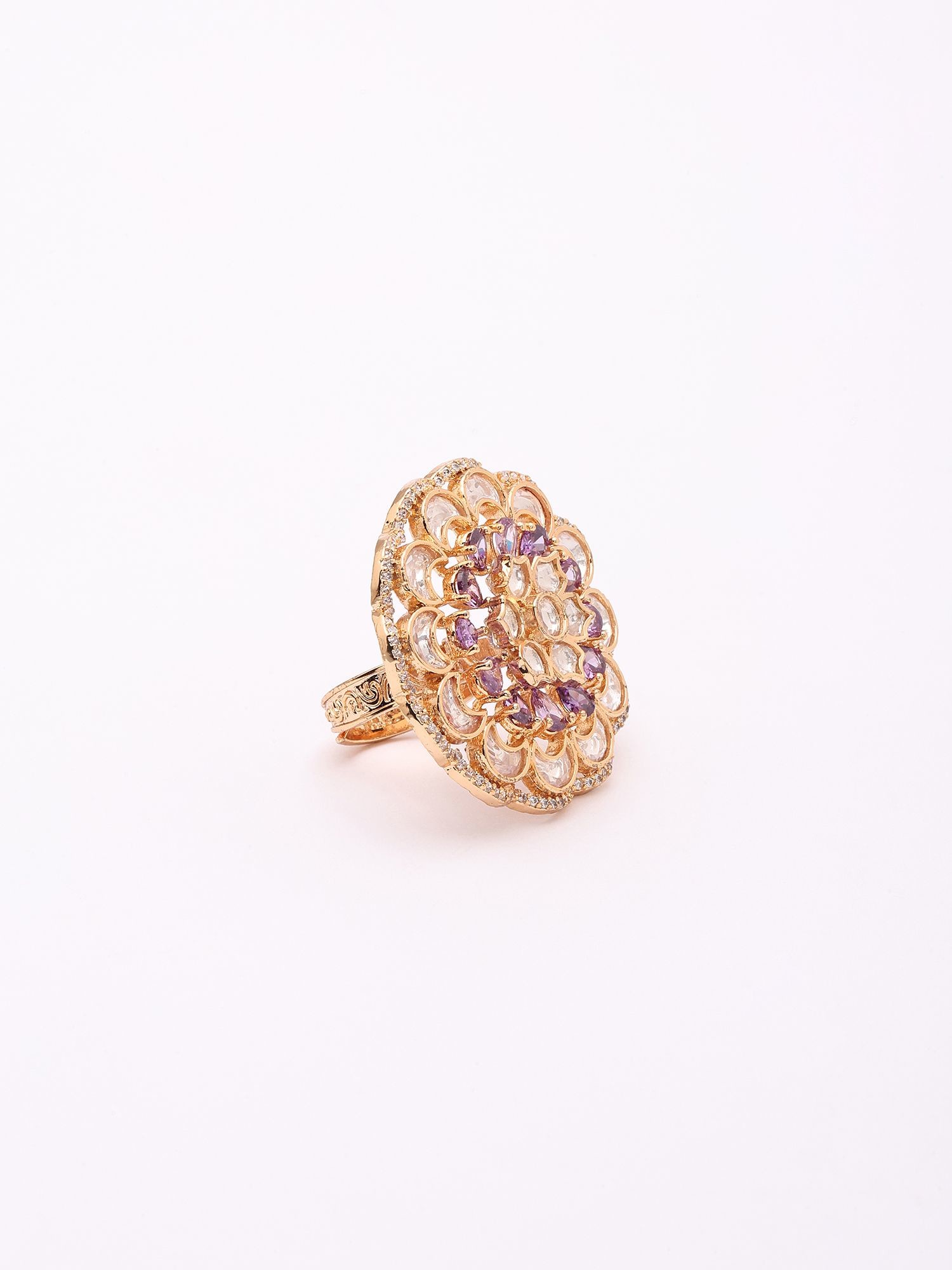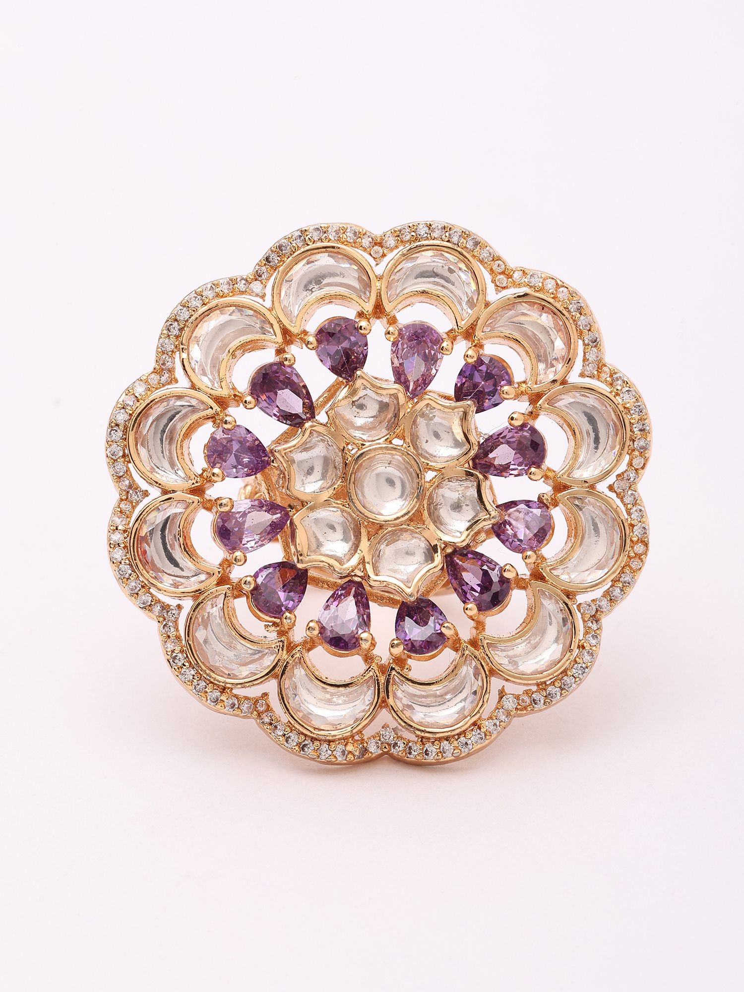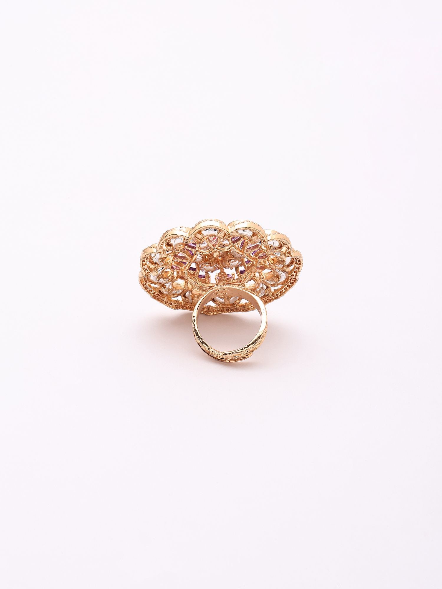 Adjustable Kundan Ring with Floral Stone Embellishments