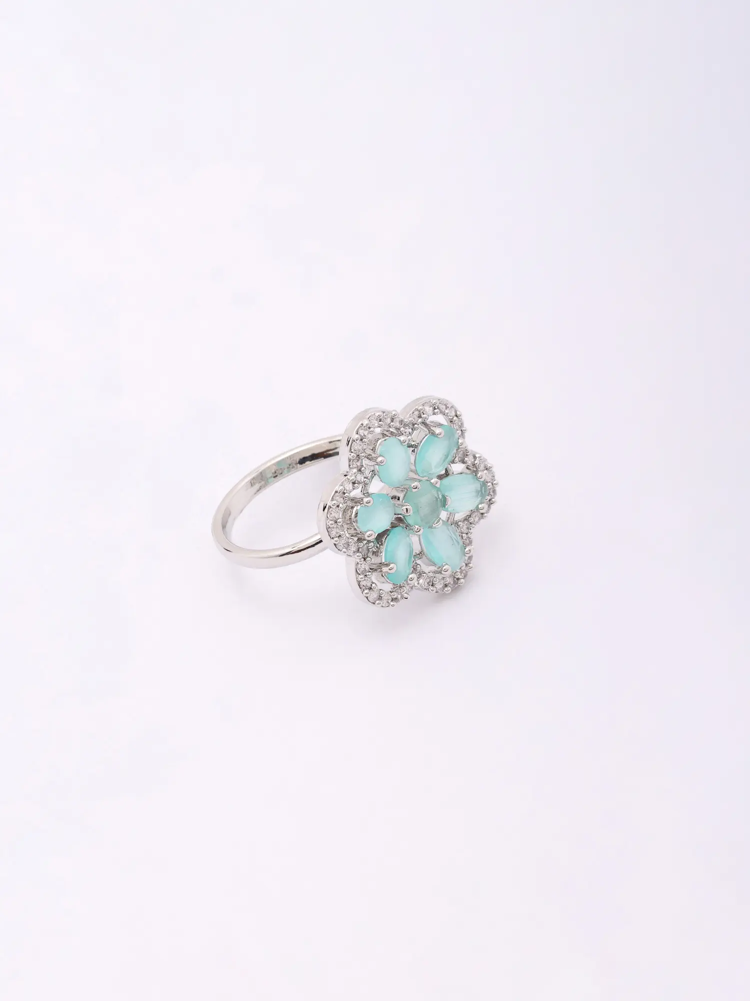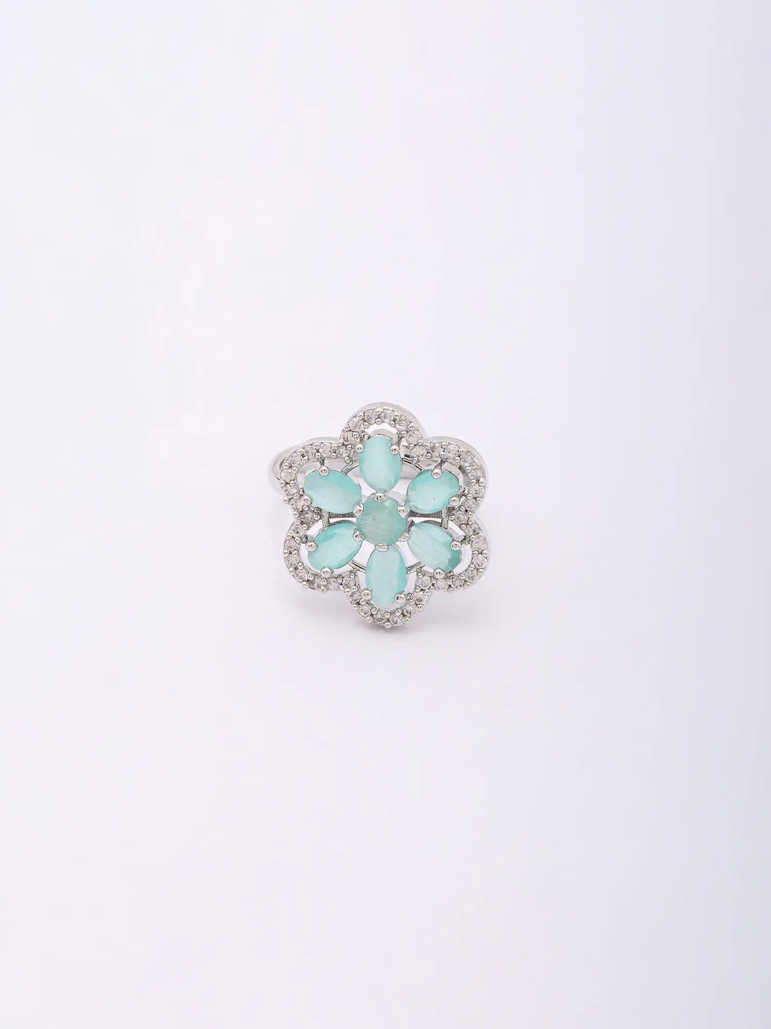 Adjustable Statement Ring Featuring a Floral Gemstone Halo