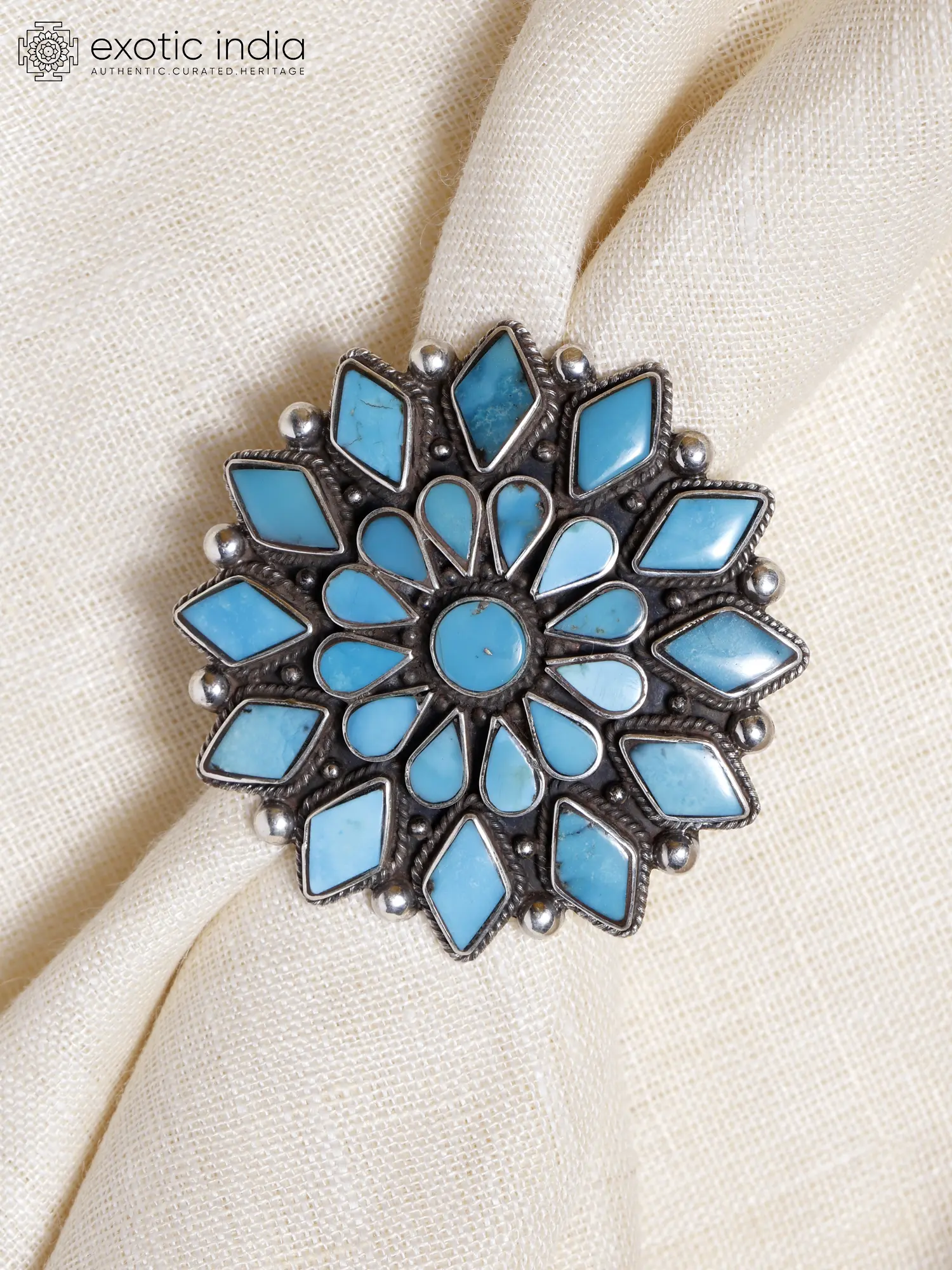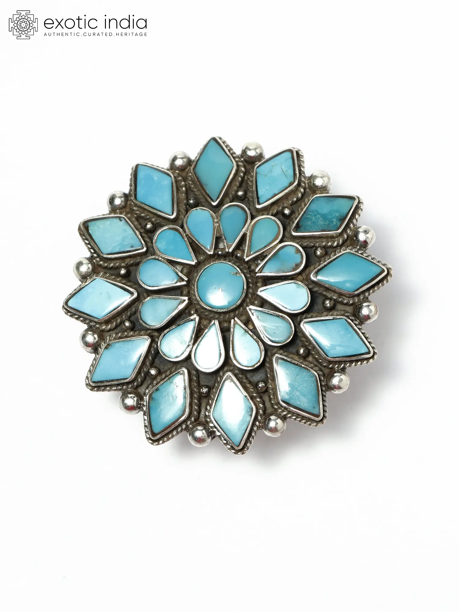 The combination of the turquoise's natural allure and the intricate silver setting creates a timeless piece that evokes elegance and history, making it a perfect addition to any jewelry collection.