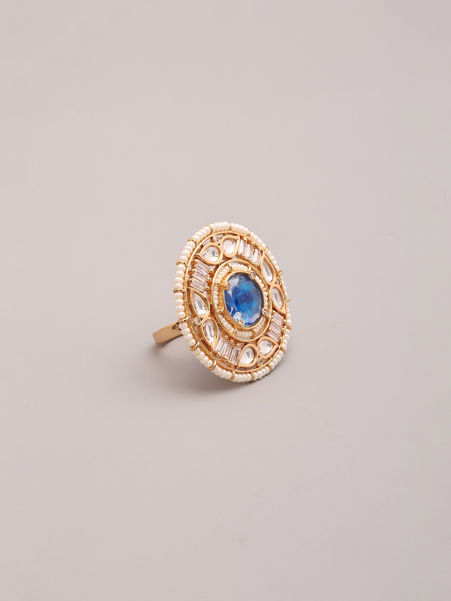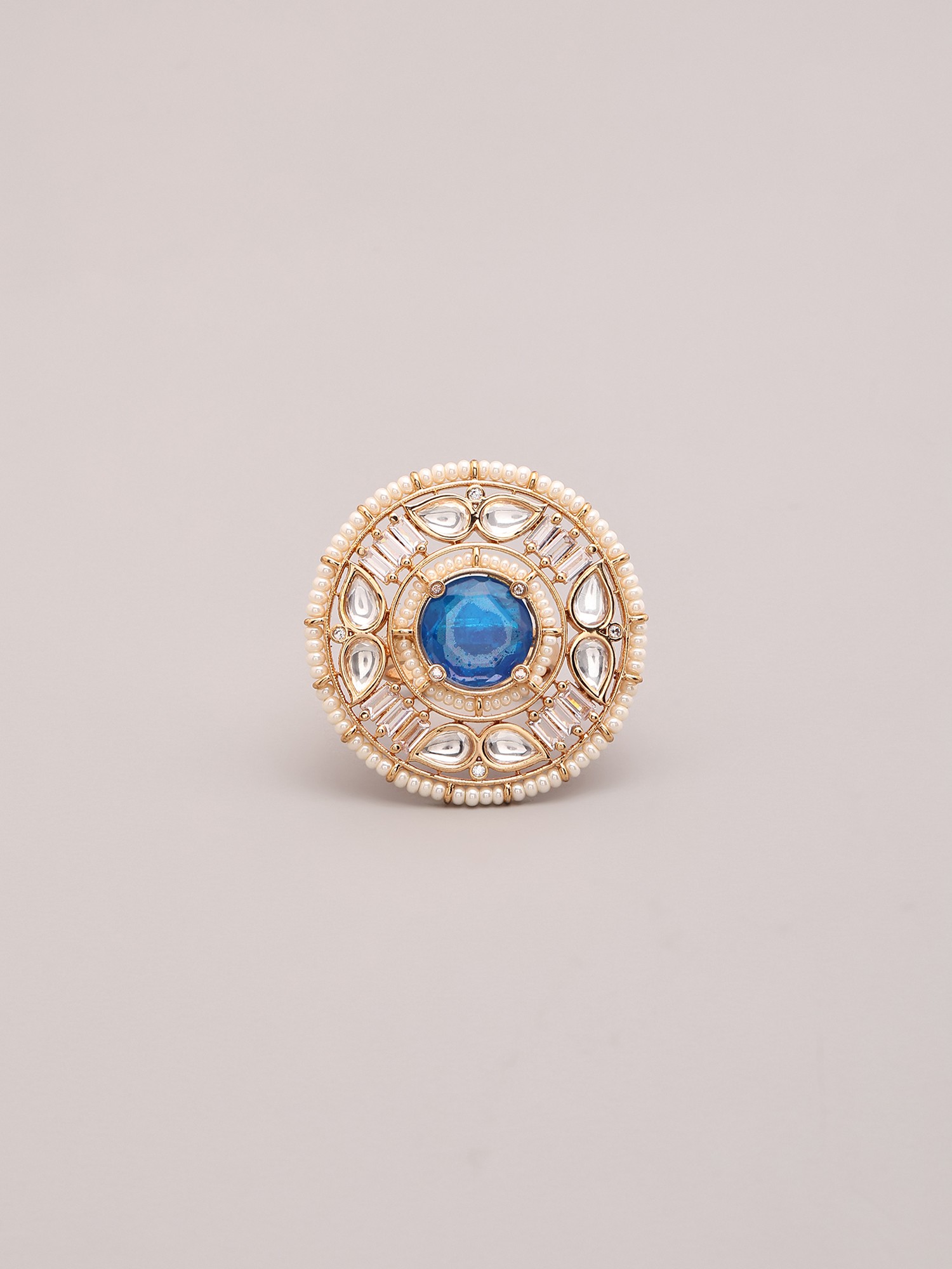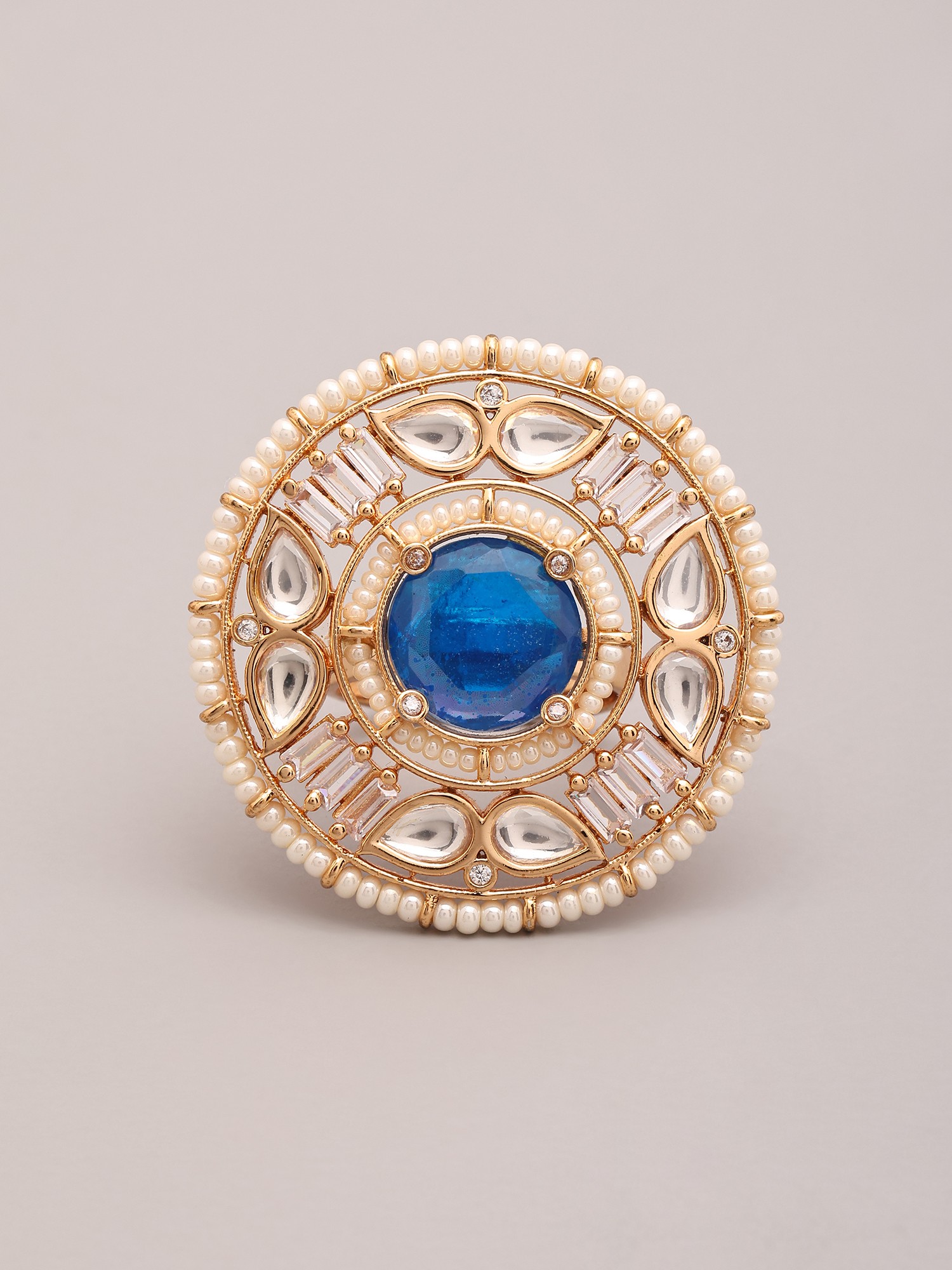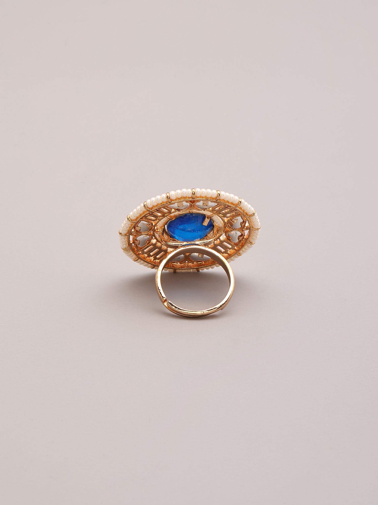 Adjustable Ring Featuring Round Kundan Stones and Pearls