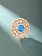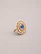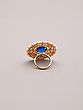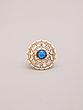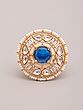 Features a striking round blue gemstone at the center, radiating vibrant color.
