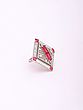 You'll admire the striking visual impact of its dimensions, measuring approximately 1 inch in height and 1.1 inches in width, creating a balanced yet commanding presence on your hand. The central rectangular red stone, a vibrant focal point, is exquisitely flanked by the sparkle of countless tiny crystals, drawing the eye and showcasing the depth of its intricate design. The adjustable nature ensures a comfortable and personalized fit, allowing you to wear this masterpiece with effortless grace.