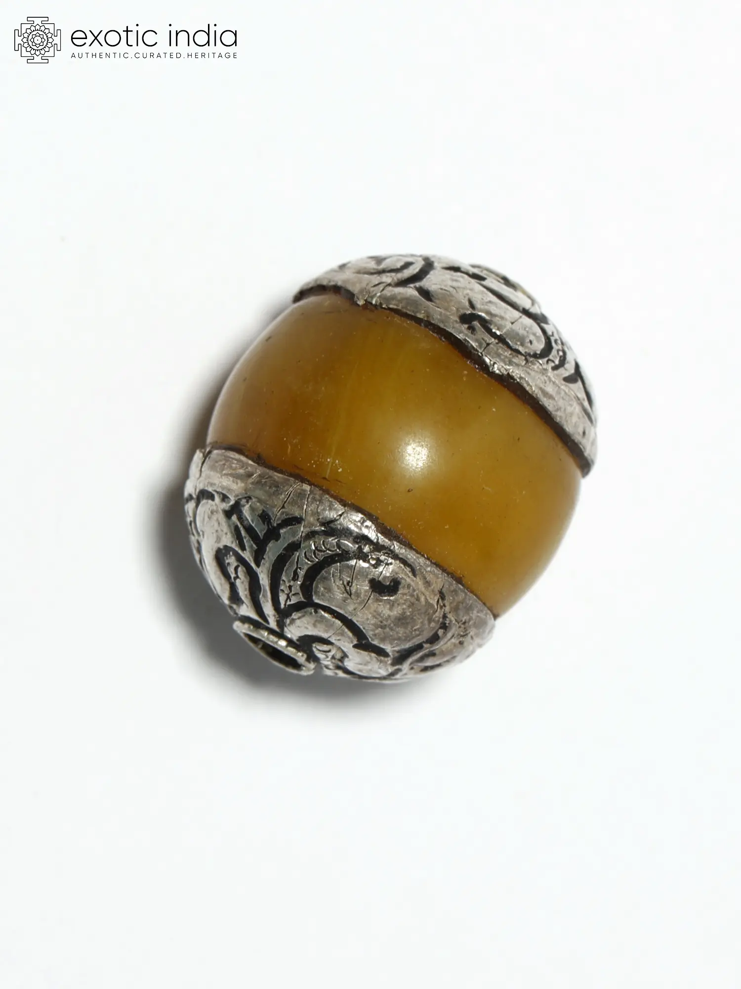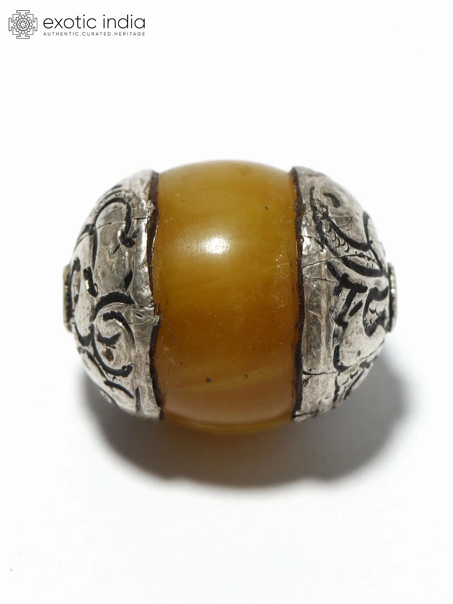 Amber Dust Drum with Silver Caps (Price Per Pair)