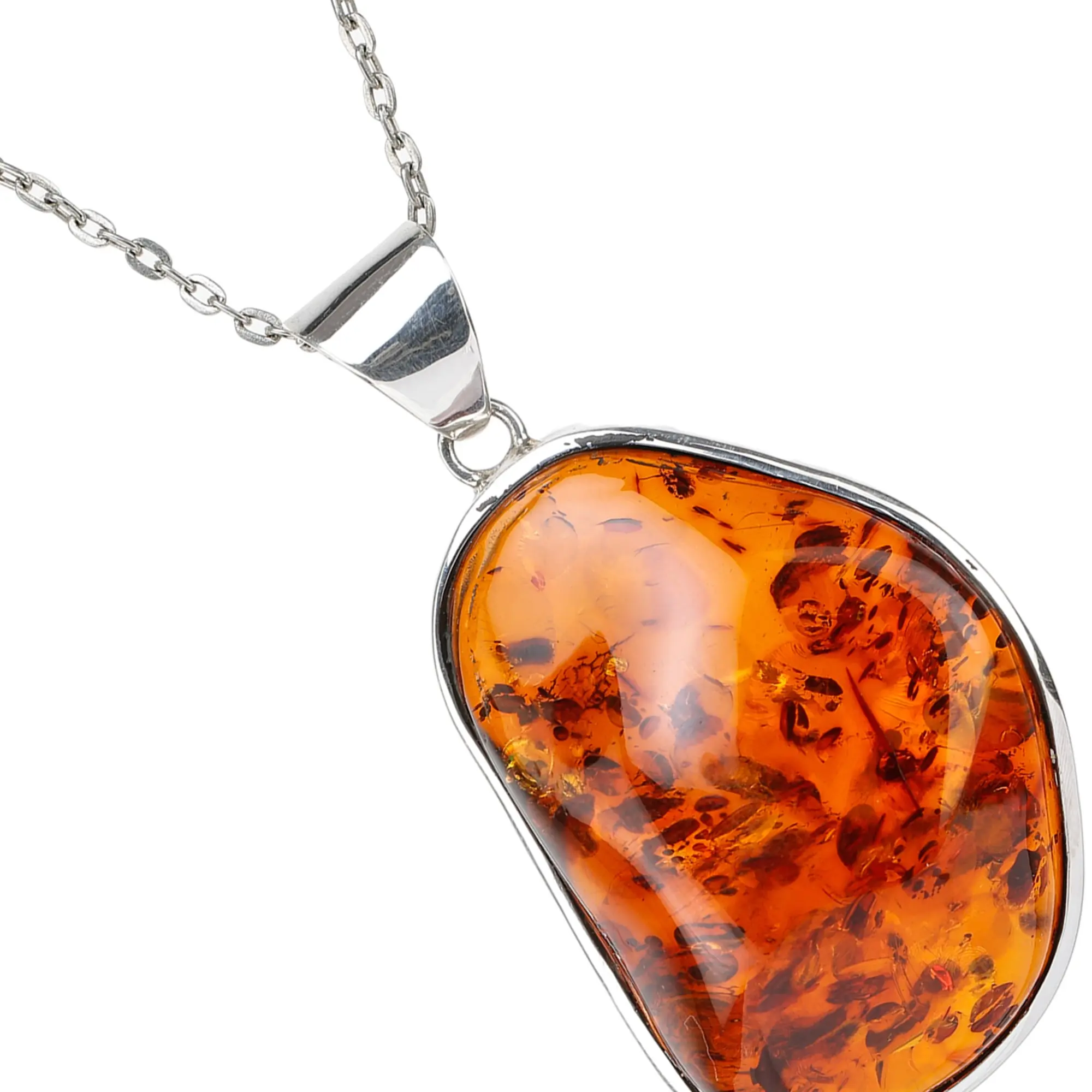 This amber pendant is more than just a beautiful accessory; it's a piece of history, a conversation starter, and a testament to timeless elegance. Whether you're dressing up for a special occasion or adding a touch of sophistication to your everyday look, this pendant will elevate your style. Its unique design and captivating beauty will make it a cherished addition to your jewelry collection—a piece you will treasure for years to come. The versatility of the pendant allows it to be worn with both casual and formal attire. Give yourself, or a loved one, the gift of enduring beauty and captivating style with this extraordinary amber and sterling silver pendant.