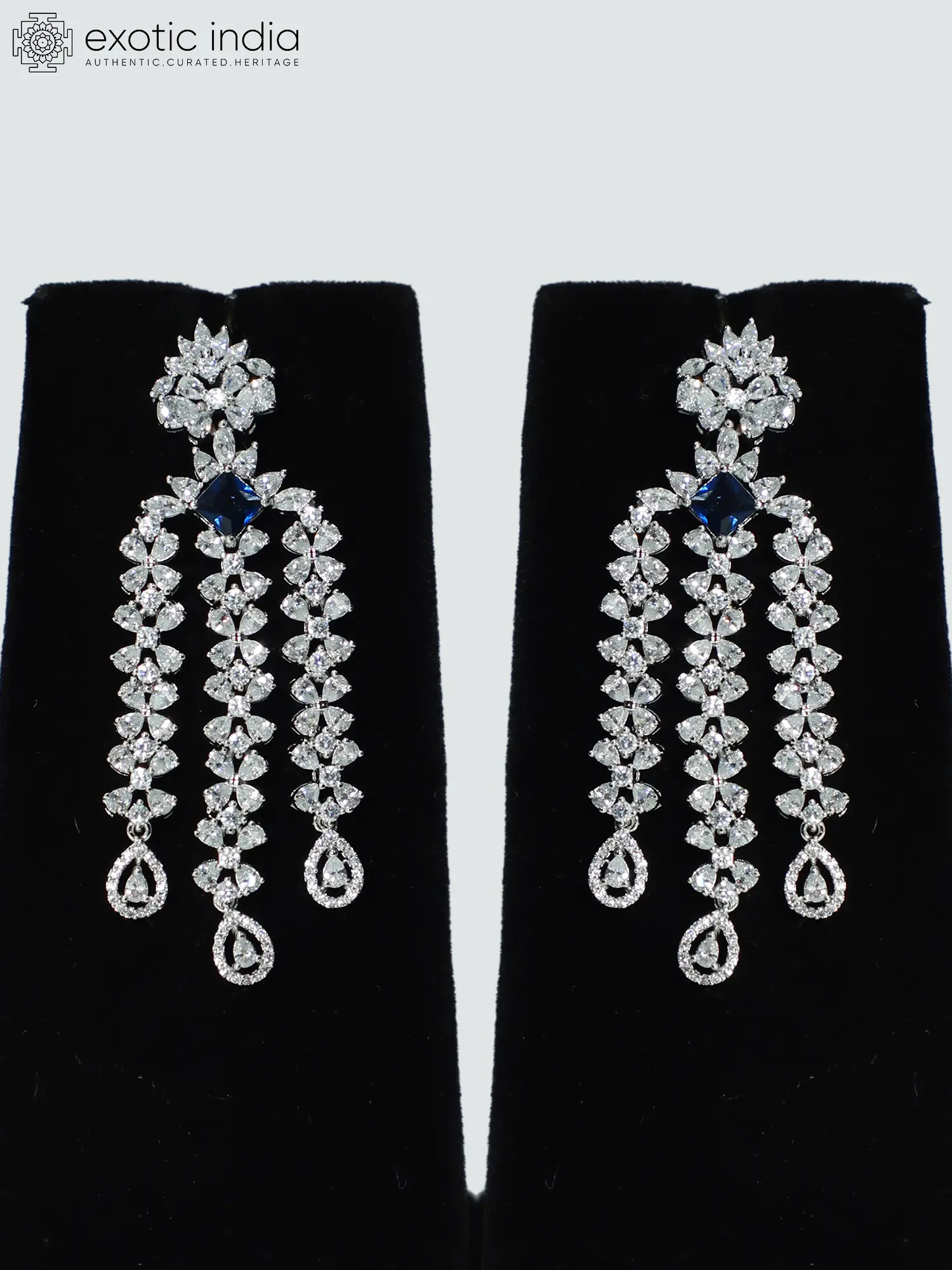 Floral Design Blue Stone & Diamond Necklace Set with Earrings