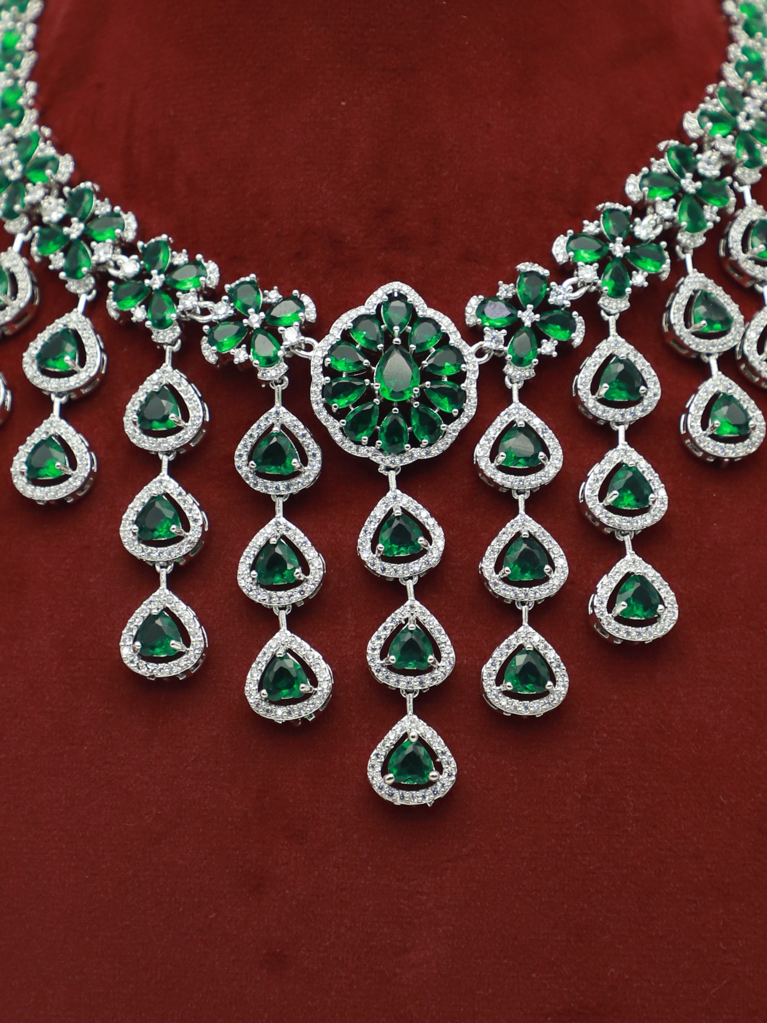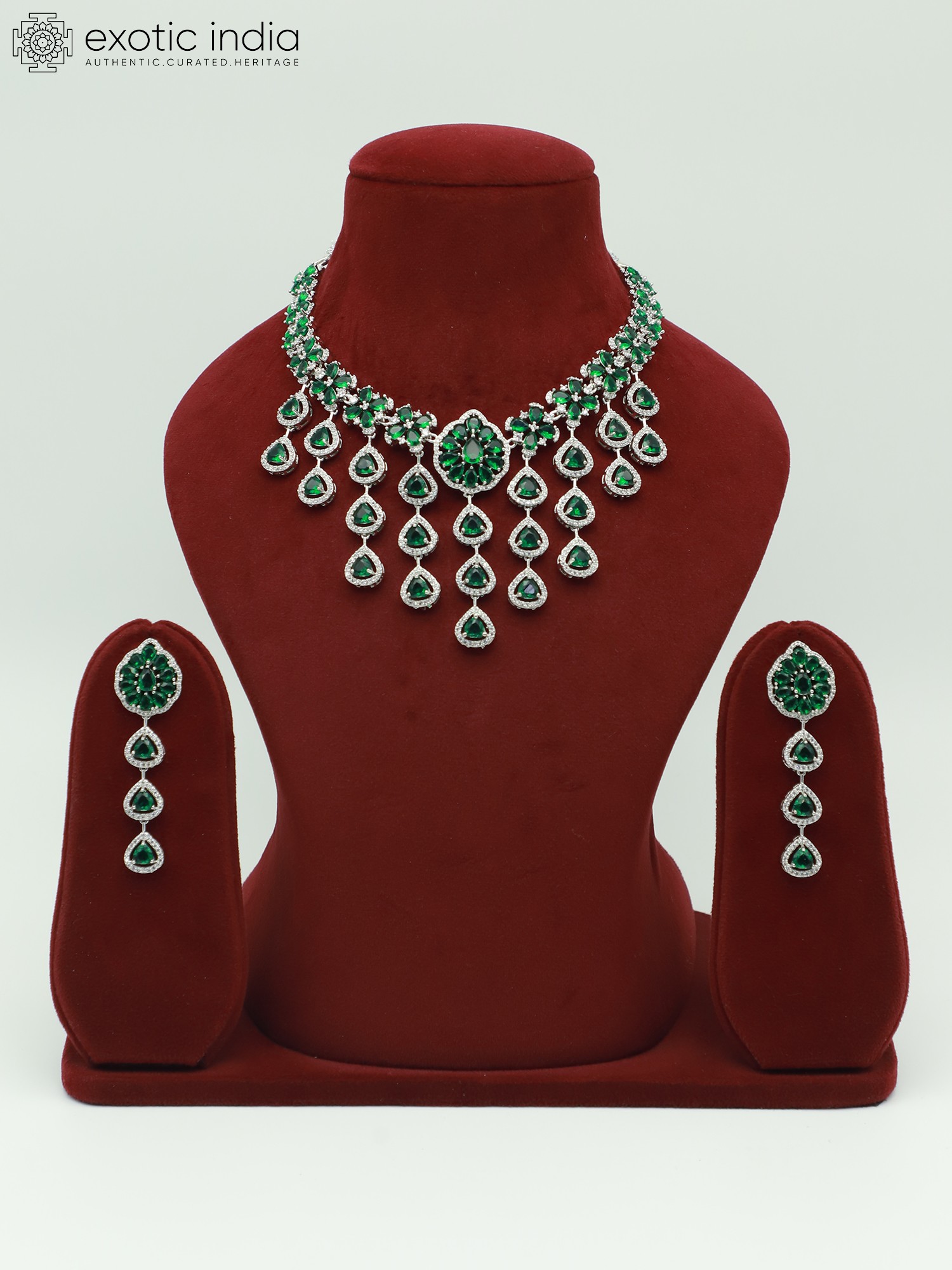Stone Studded American Diamond Attractive Necklace With Matching Earrings