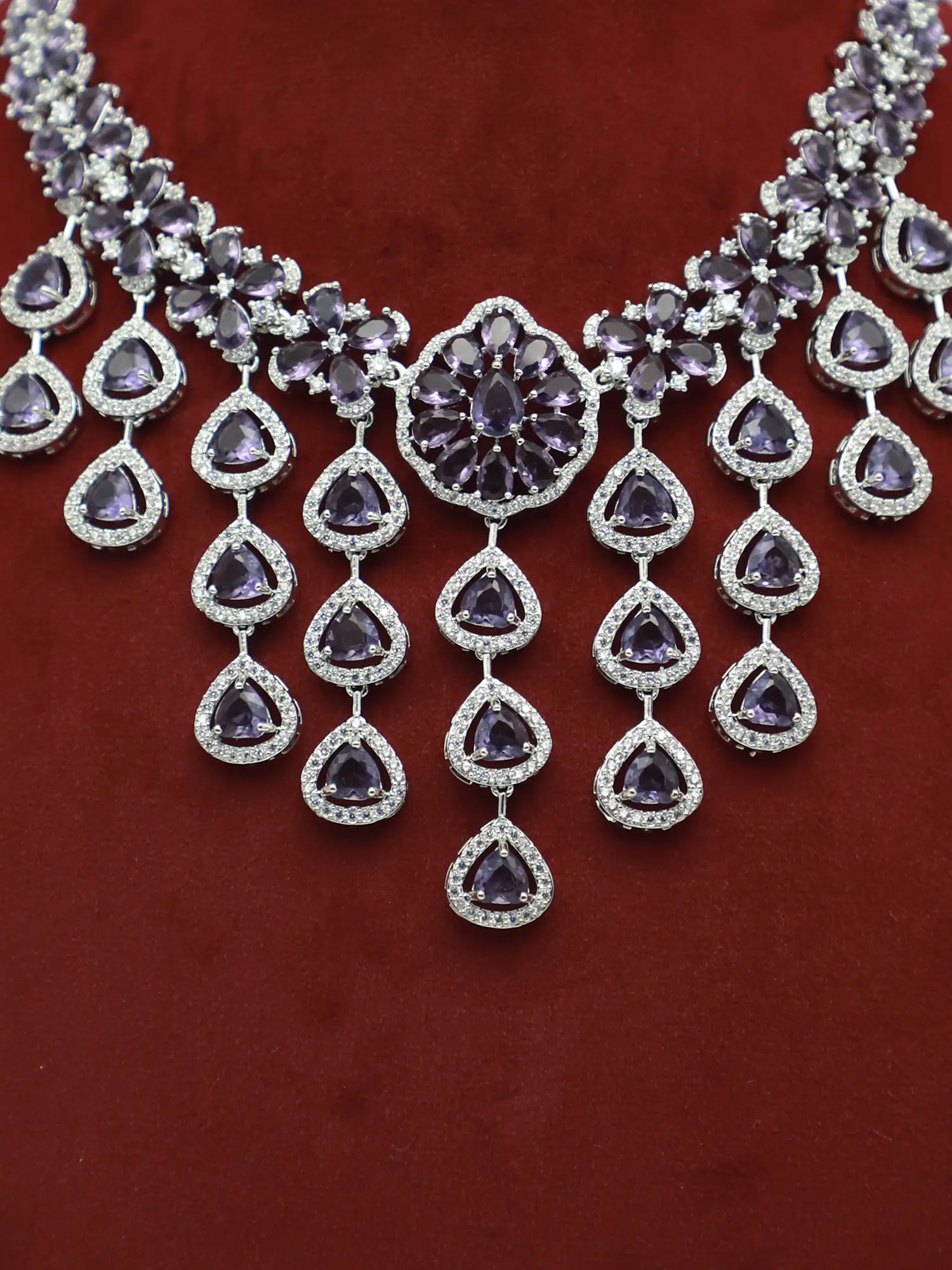Elegant American Diamond Stone Studded Necklace With Matching Earrings