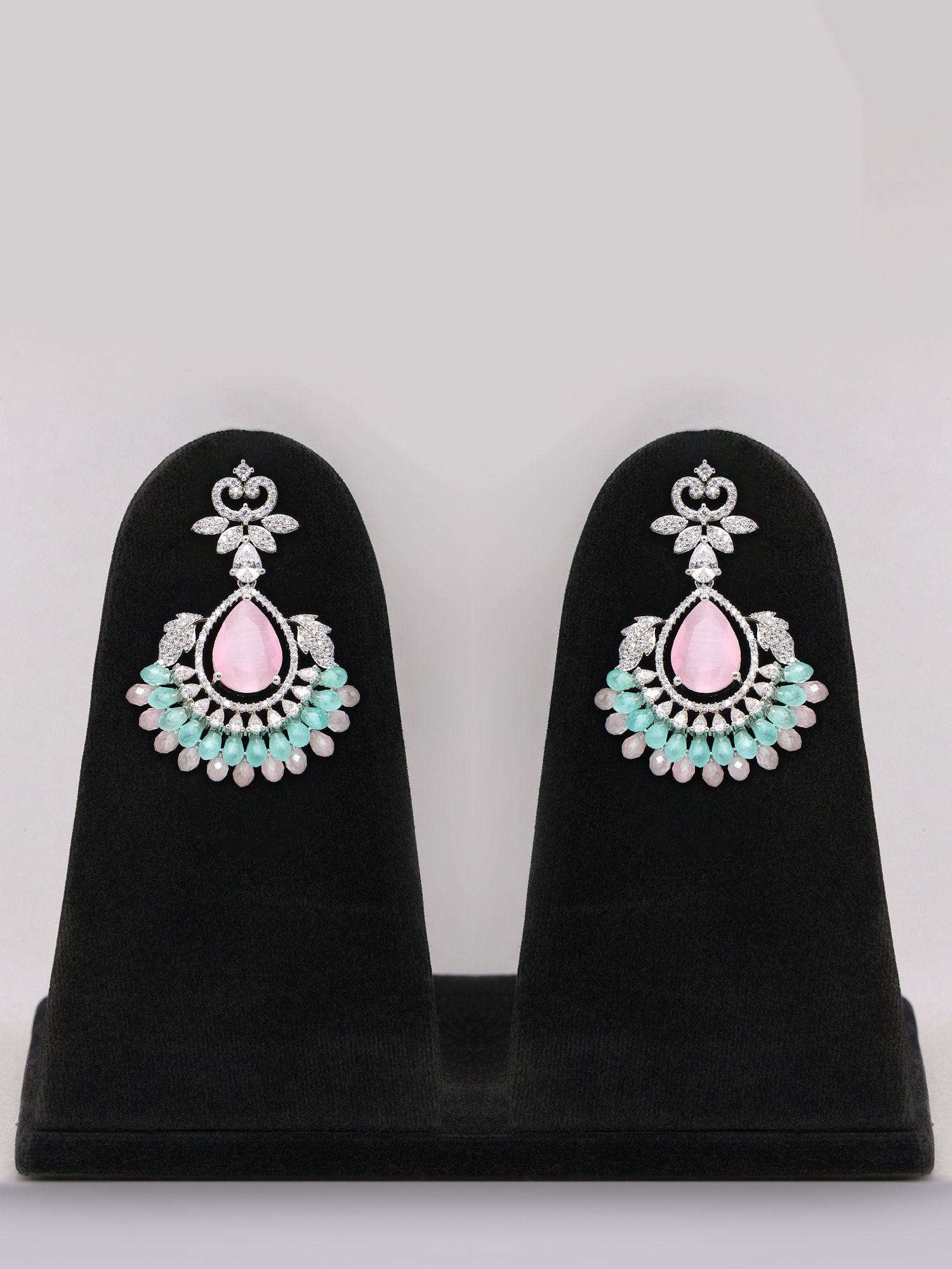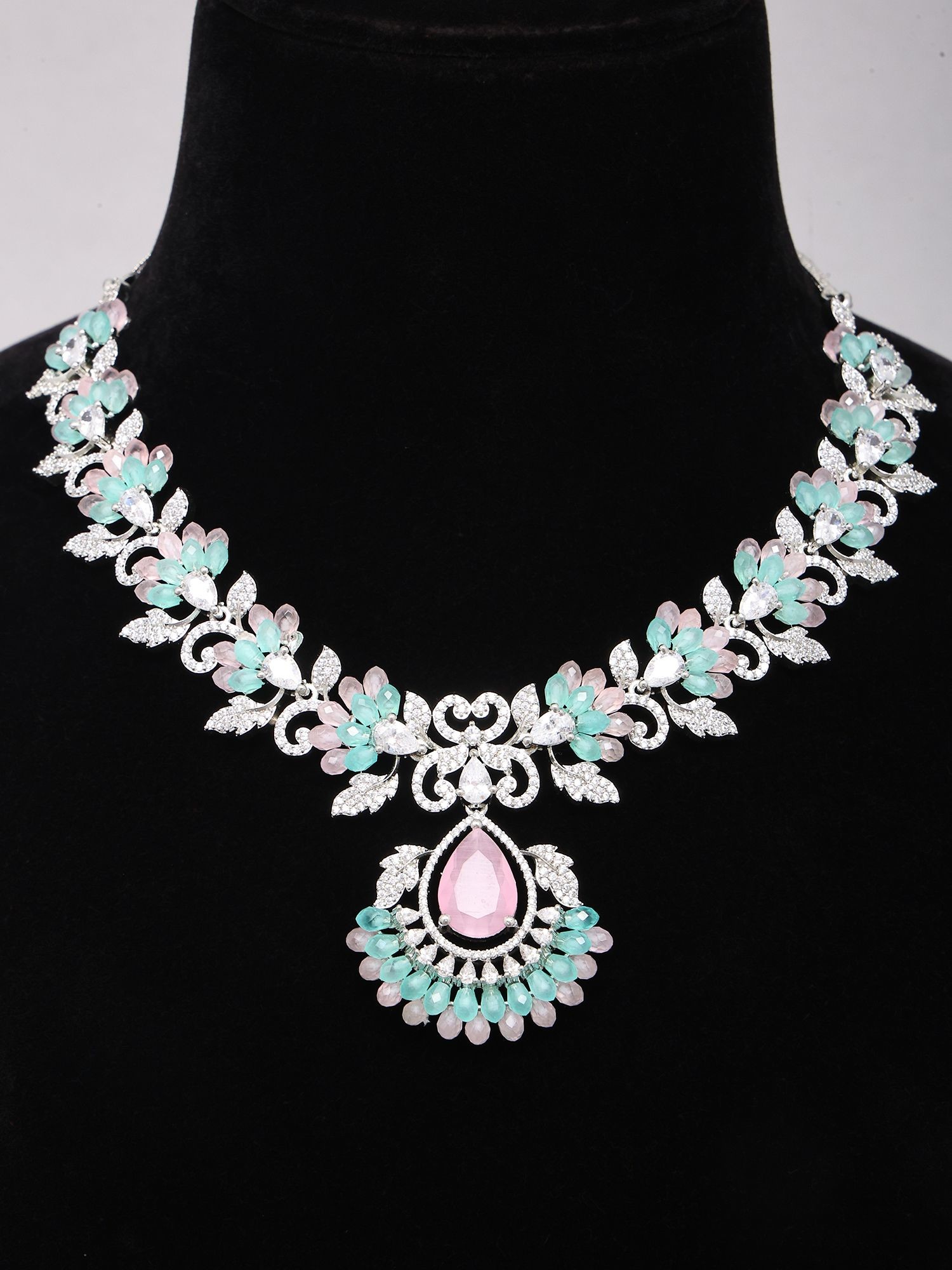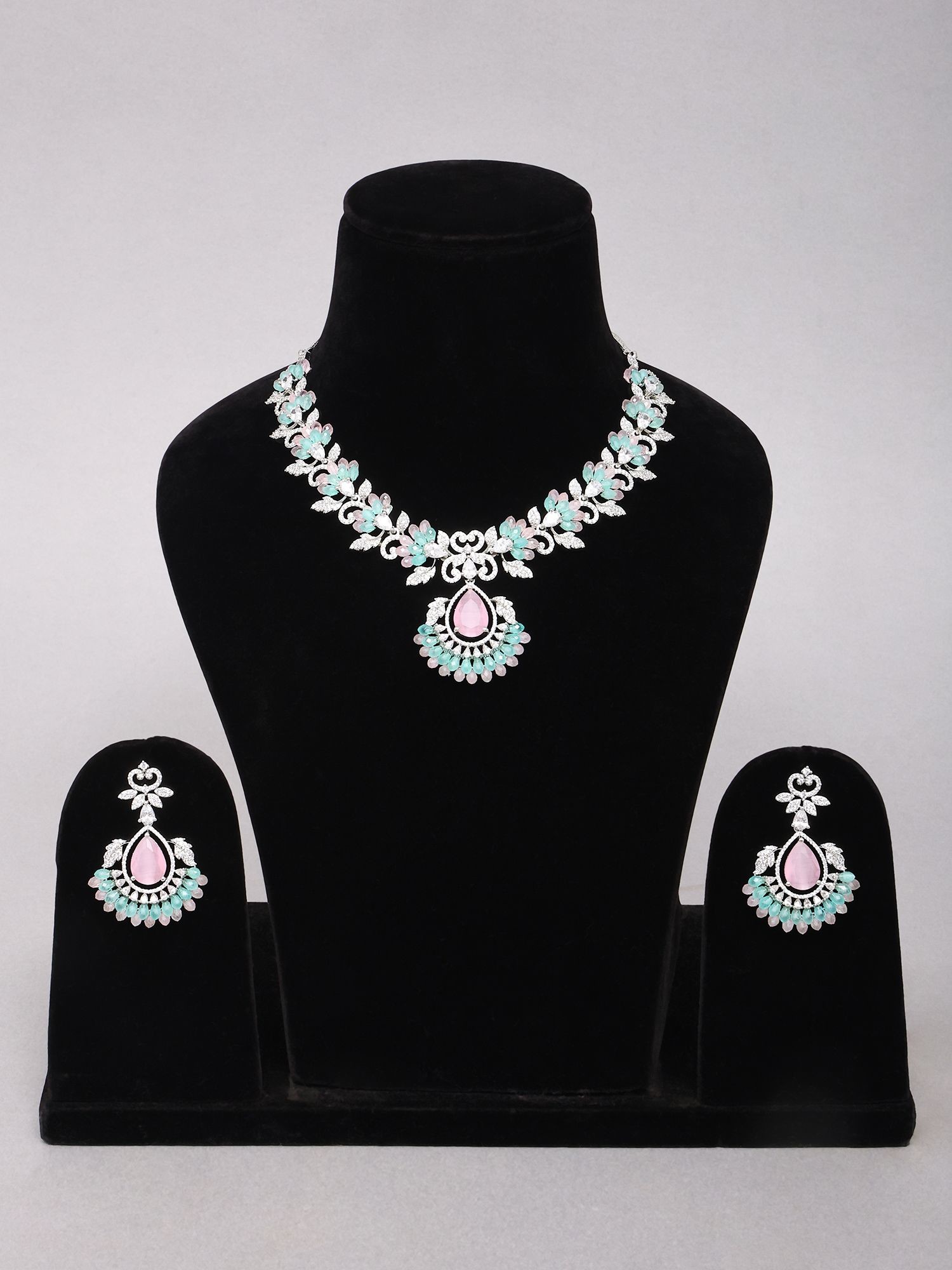 Elegant Necklace and Earring Set with Pink American Diamonds