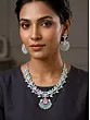 Paisley Design Necklace and Earring Set in Sea Green American Diamonds